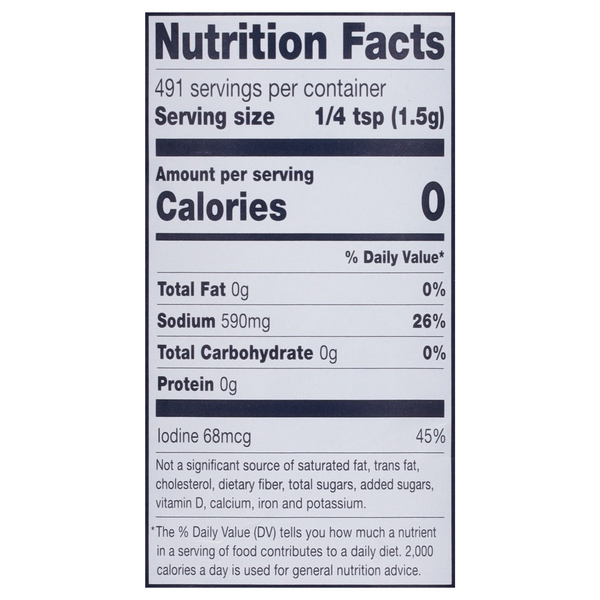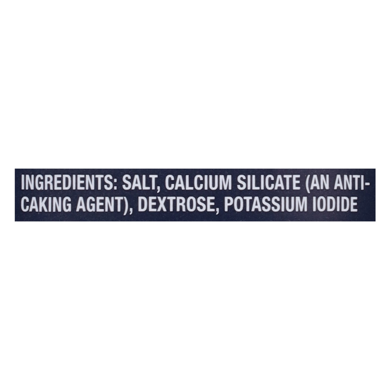 Salt, Calcium Silicate (an Anti-Caking Agent), Dextrose, Potassium Iodide.