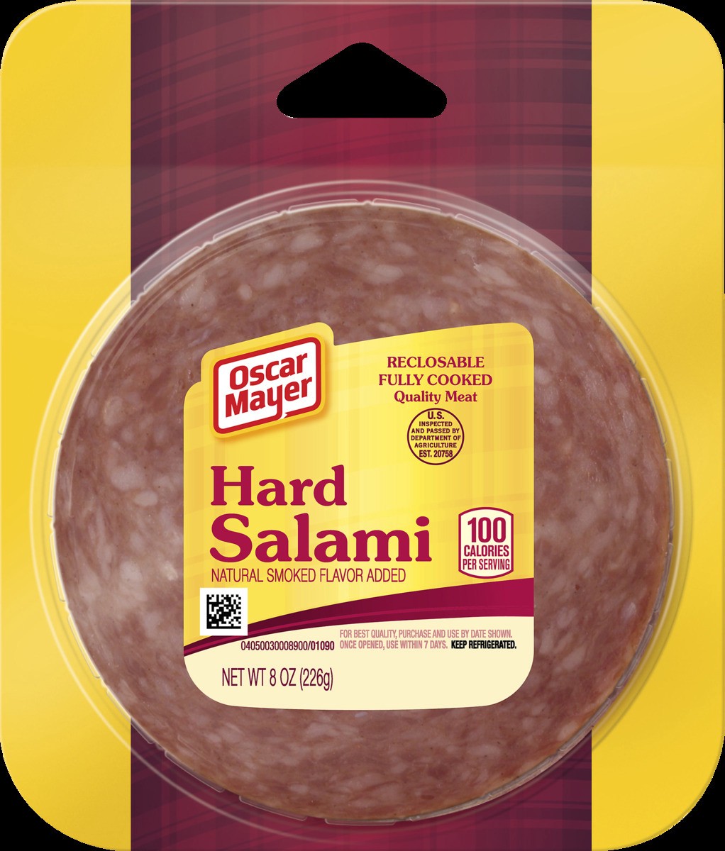 Oscar Mayer Hard Salami, with natural smoke flavor added, is a great option for sandwiches or a snack between meals. Made with quality meat, this fully cooked hard salami has the classic salami taste …