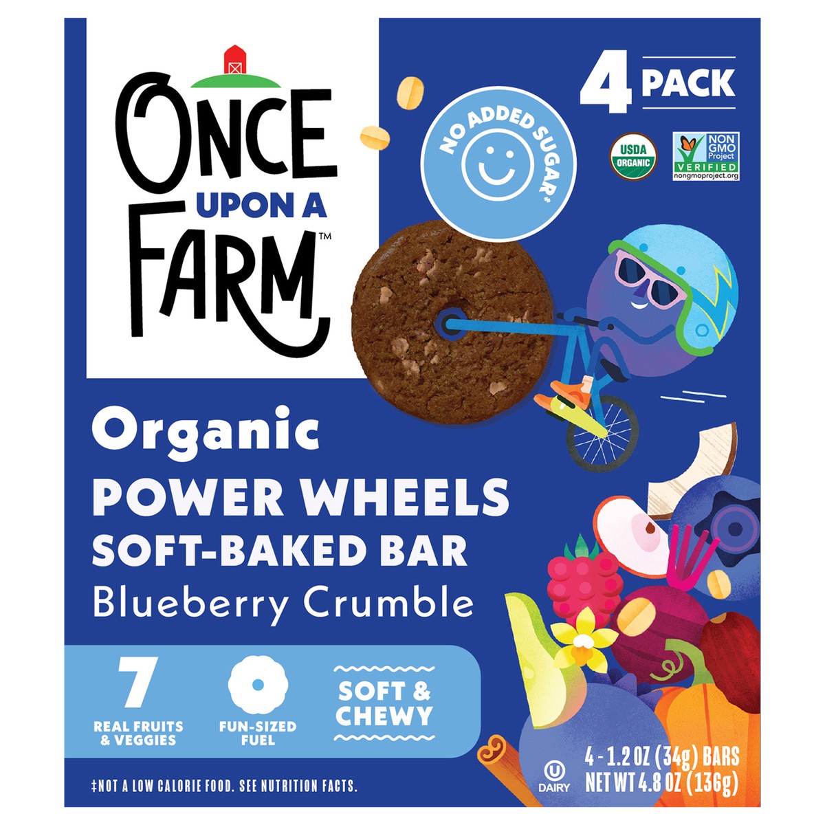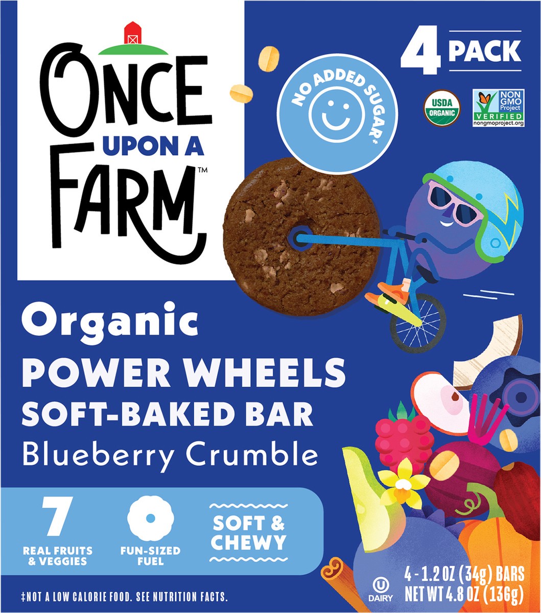 Once Upon A Farm Organic Power Wheels Soft Baked Kids' Bar Multipack, Blueberry Crumble, 4pk