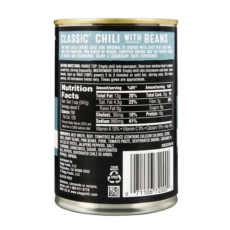 Stagg Chili Gluten Free Classic Chili with Beans - 15oz