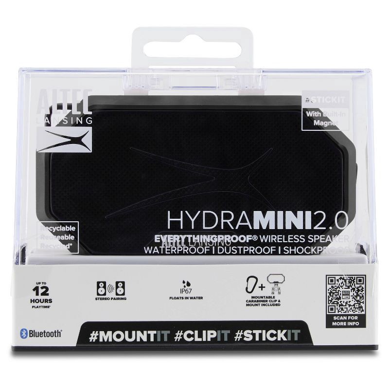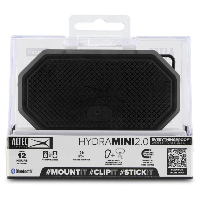 The Altec Lansing HydraMini 2.0 EverythingProof™ portable bluetooth speaker is equipped with versatile features that will prepare you for every adventure! Up to a 12-hour battery life, included speake…