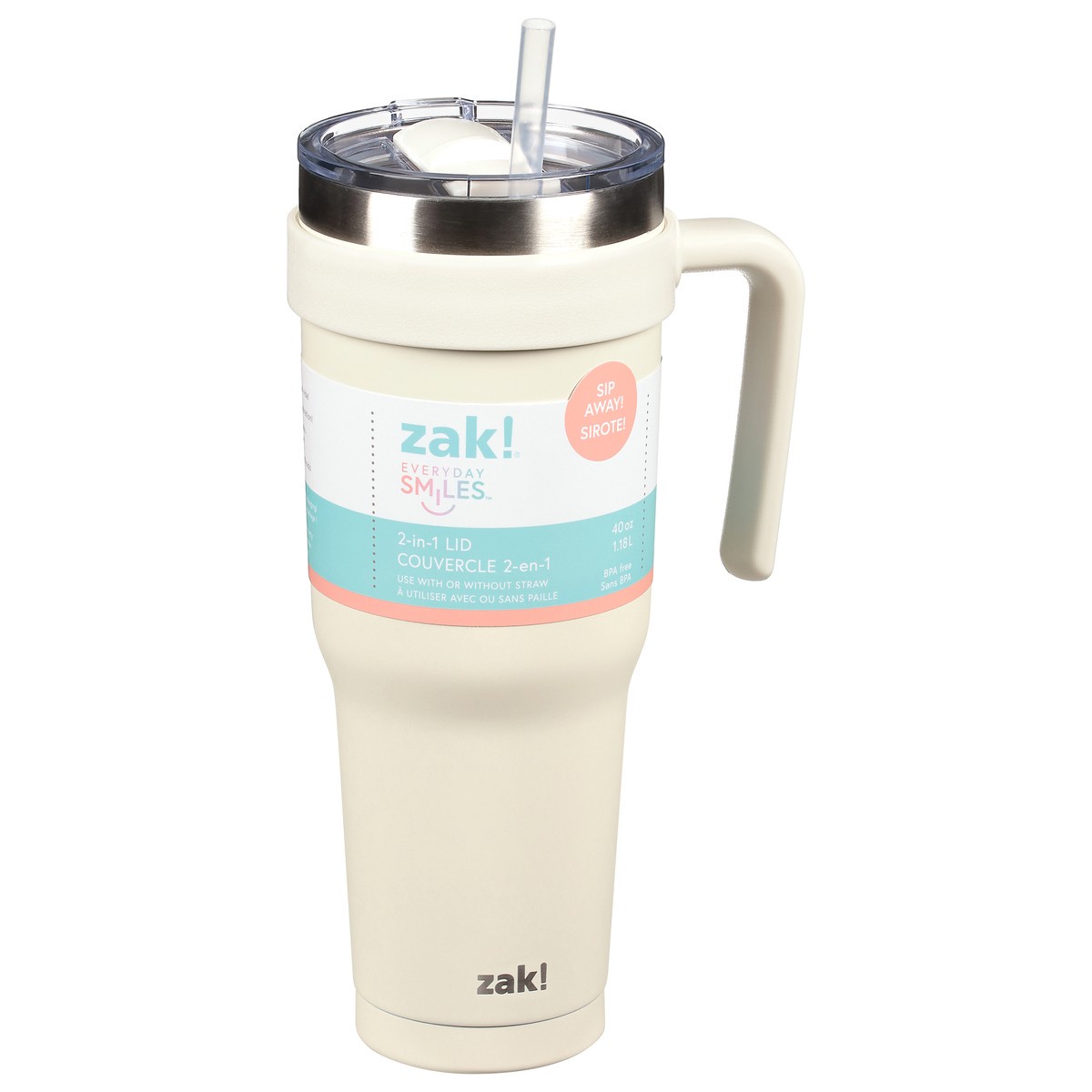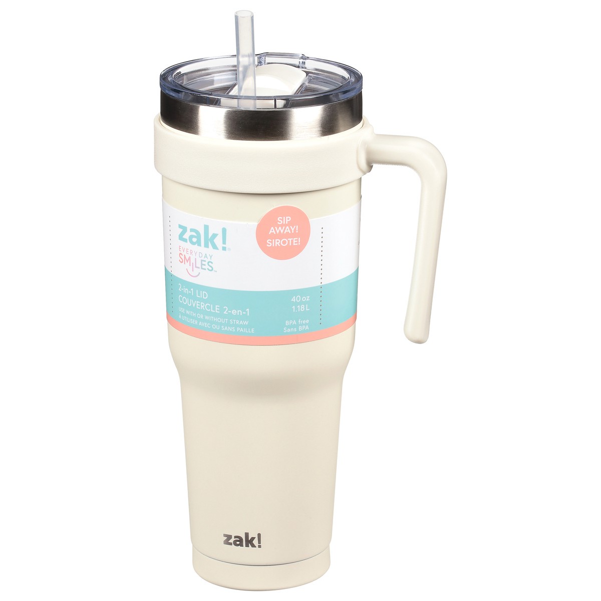 Zak! Designs Designs Everyday Smiles Ivory Soft Paint 40 oz Stainless Steel Double Wall Waverly Tumbler