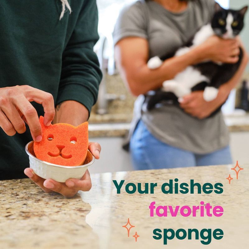 - CAT SHAPE: The fun cat shape sponge gets into corners easily and stands on its own for drying and storage