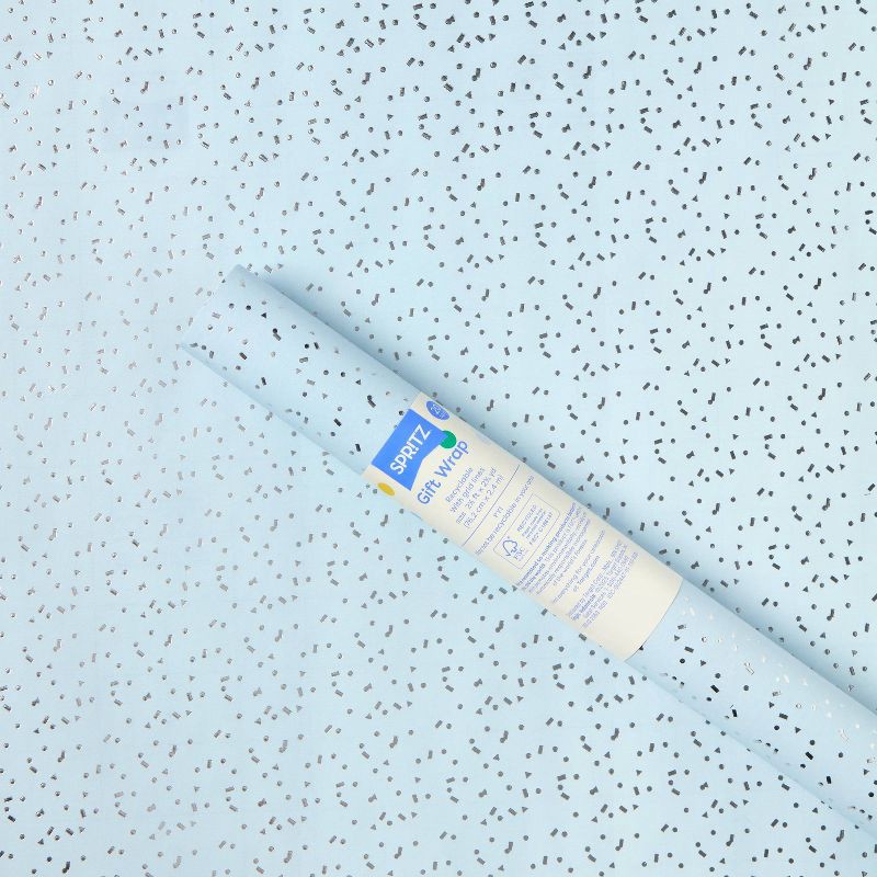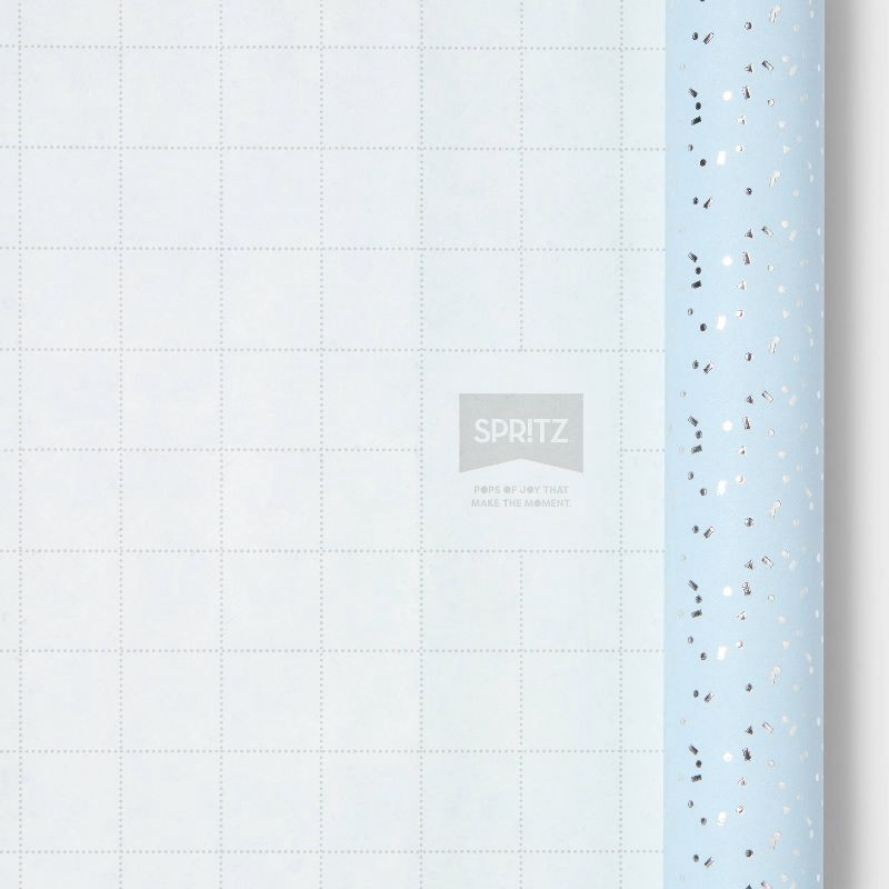 96"x30" Foil Confetti Print Wrapping Paper Blue/Silver - Spritz™