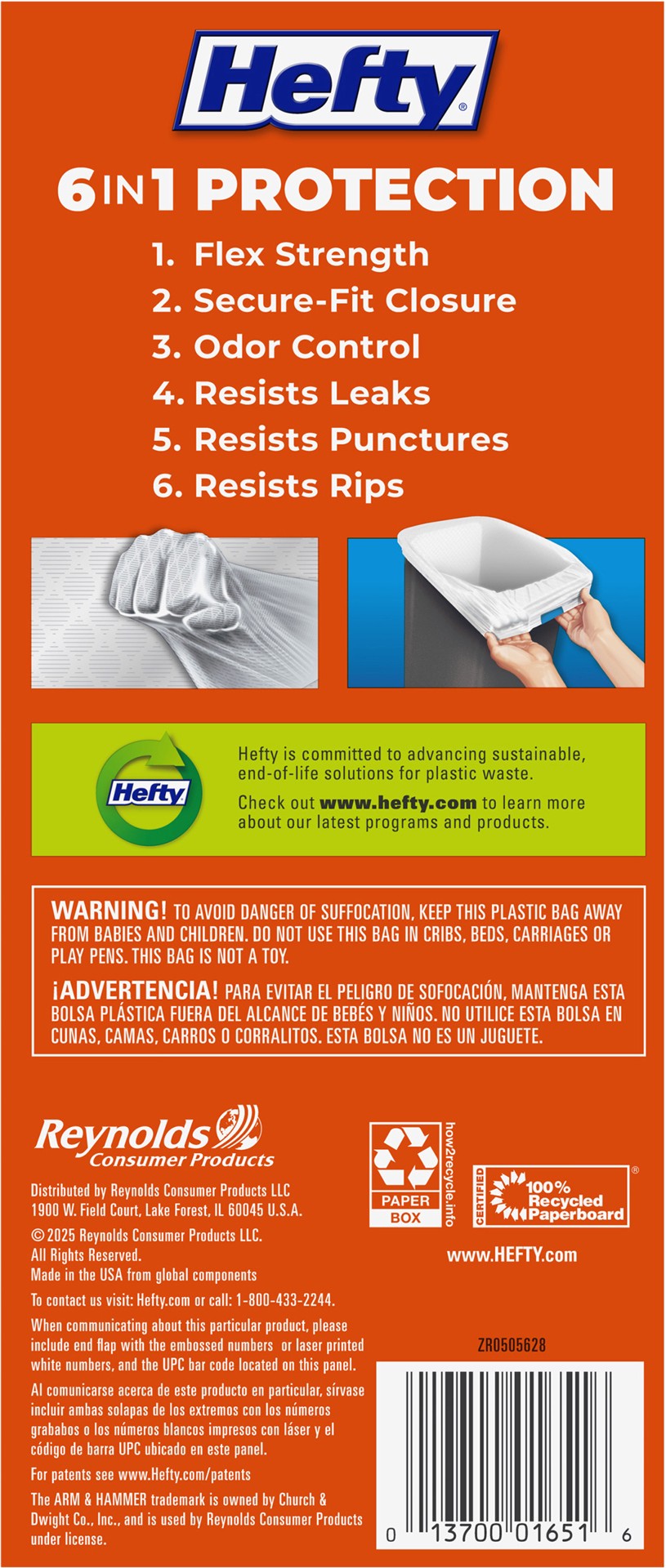 Trust Hefty Ultra Strong 13 Gallon Trash Bags to keep your kitchen waste contained—all the way from the can to the curb. Thanks to 6-in-1 Protection, these tall kitchen trash bags offer flexible stren…