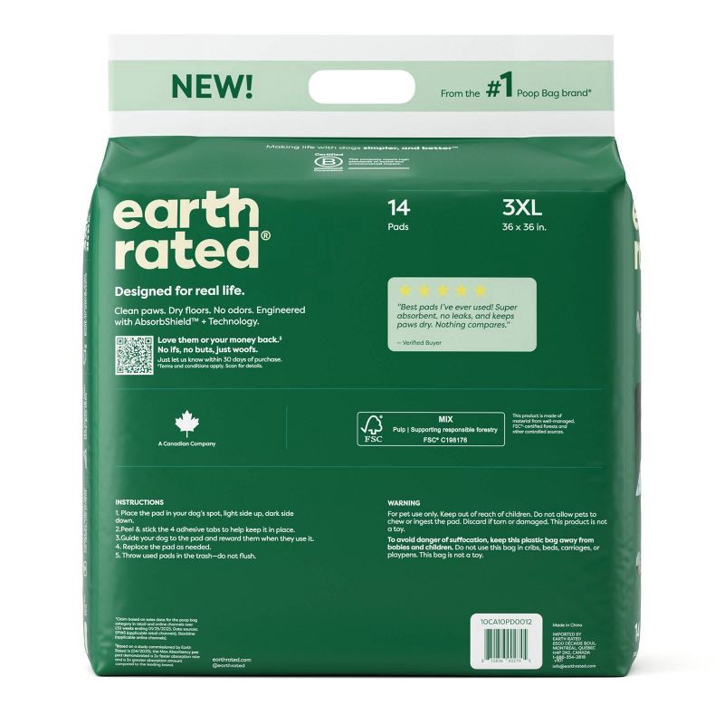 Earth Rated Puppy Pee Pads With Absorbshield+ Technology