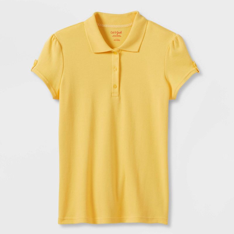 Girls' Short Sleeve Interlock Uniform Polo Shirt - Cat & Jack™ Yellow M: Cotton Blend, School Apparel, Machine Washable
