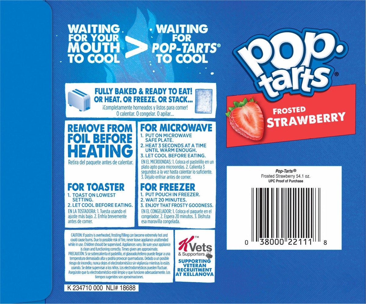 Pop-Tarts Frosted Strawberry toaster pastries are a delicious treat to look forward to any time of day. Includes one, 54.1-ounce box containing 64 Frosted Strawberry Pop-Tarts. Jump-start your day wit…