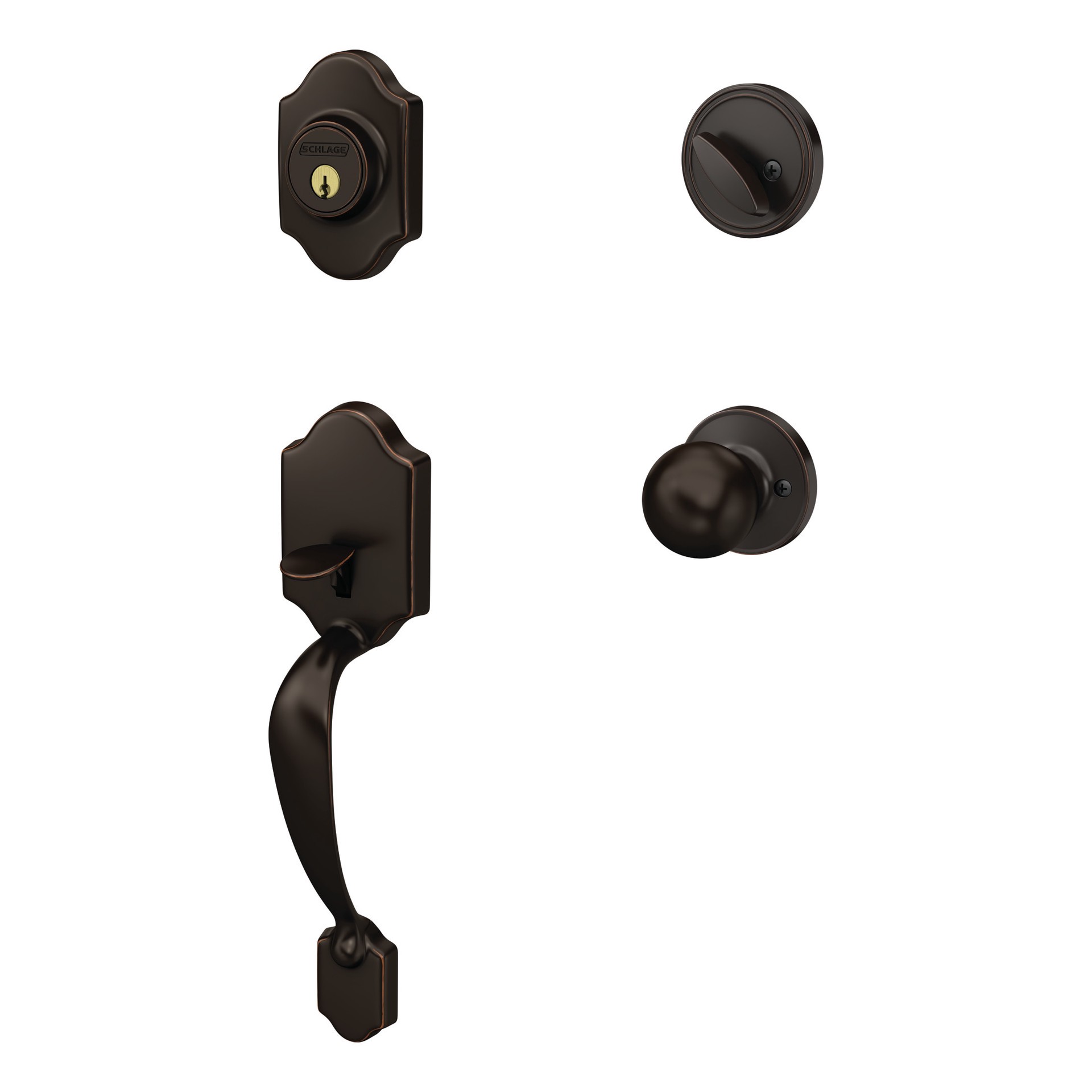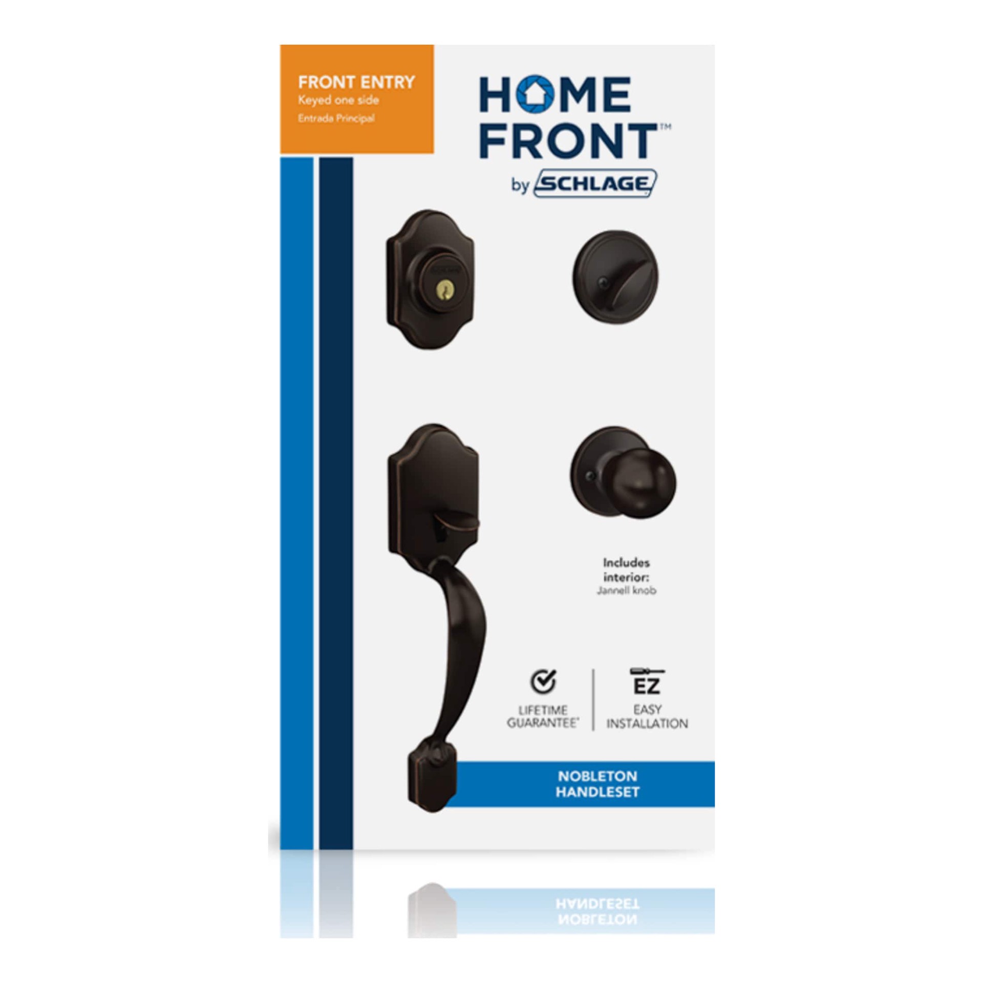 Home Front by Schlage Nobleton-Jannell Aged Bronze Exterior Single-Cylinder Deadbolt and Keyed Entry Door Handleset