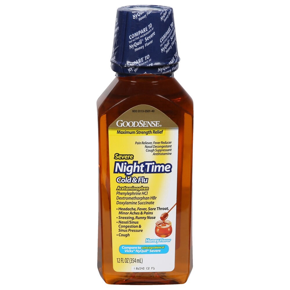 In Each 15 mL Active Ingredients: Acetaminophen (325 mg), Pain Reliever/Fever Reducer; Dextromethorphan HBr (10 mg), Cough Suppressant; Doxylamine Succinate (6.25 mg), Antihistamine; Phenylephrine HCI…
