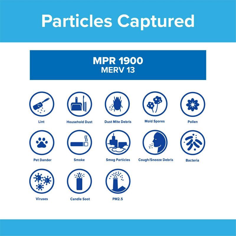 - CAPTURES MICROPARTICLES: AC Filter with a 1900 MPR and MERV 13 rating, as well as a 62% microparticle capture rate, your Filtrete Filter will help capture many microparticles between 0.3 and 1 micron from the air passing through it