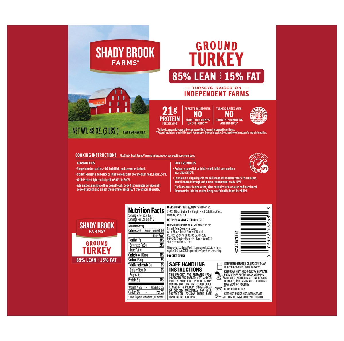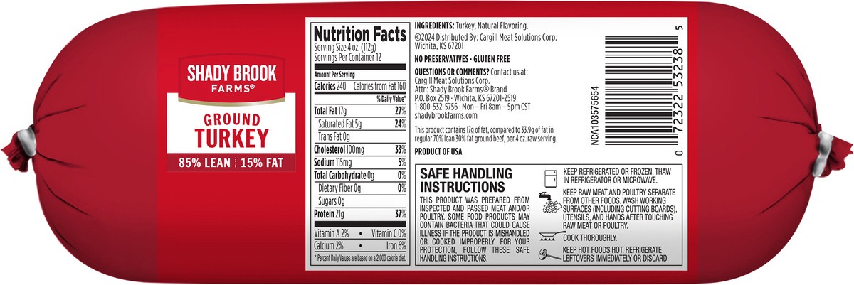 - Shady Brook Farms 85% Lean / 15% Fat Ground Turkey Roll