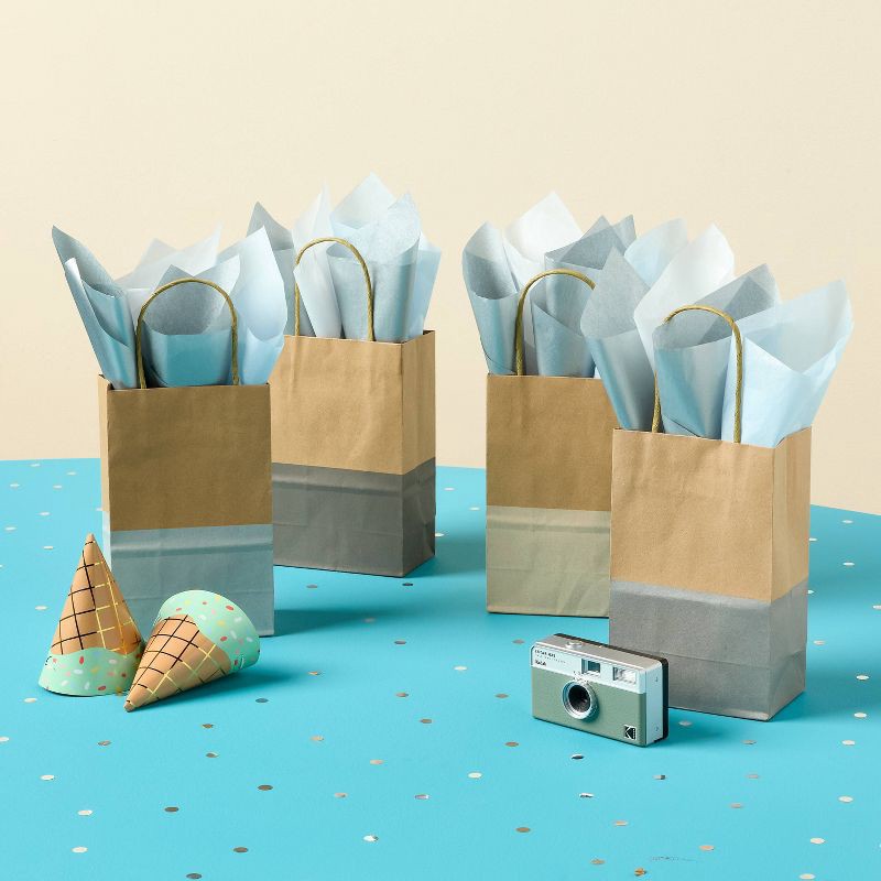 4pk XS Colorblock Kraft Gift Bags Natural/Grey - Spritz™