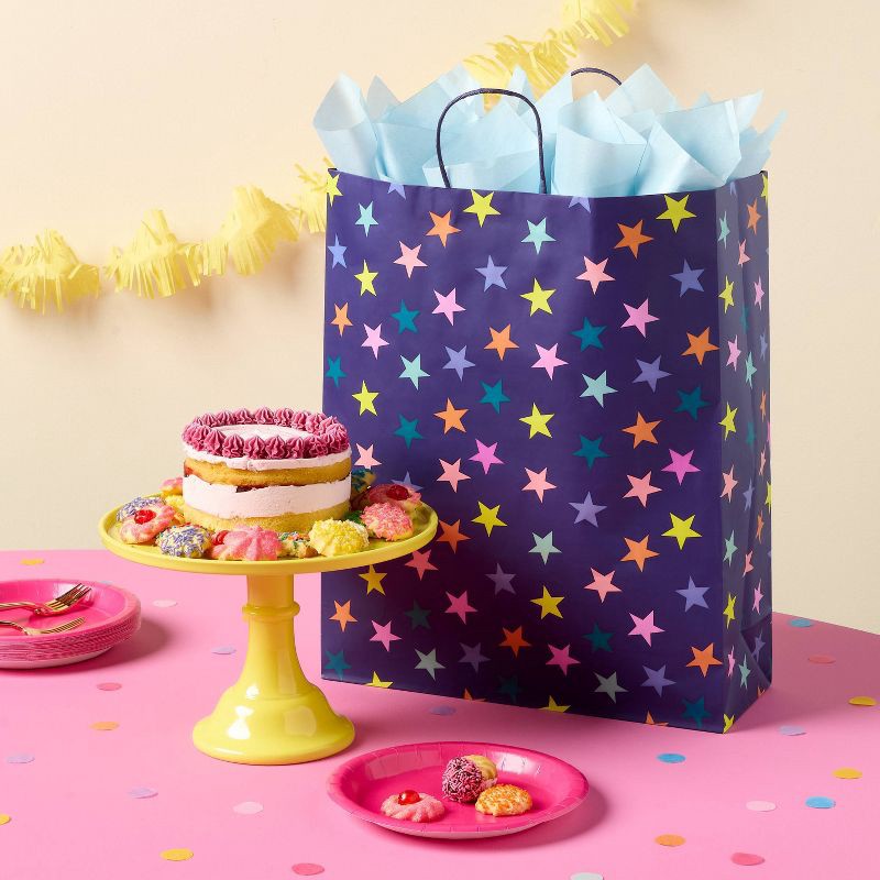 - Extra-large star gift bag in navy and colorful design