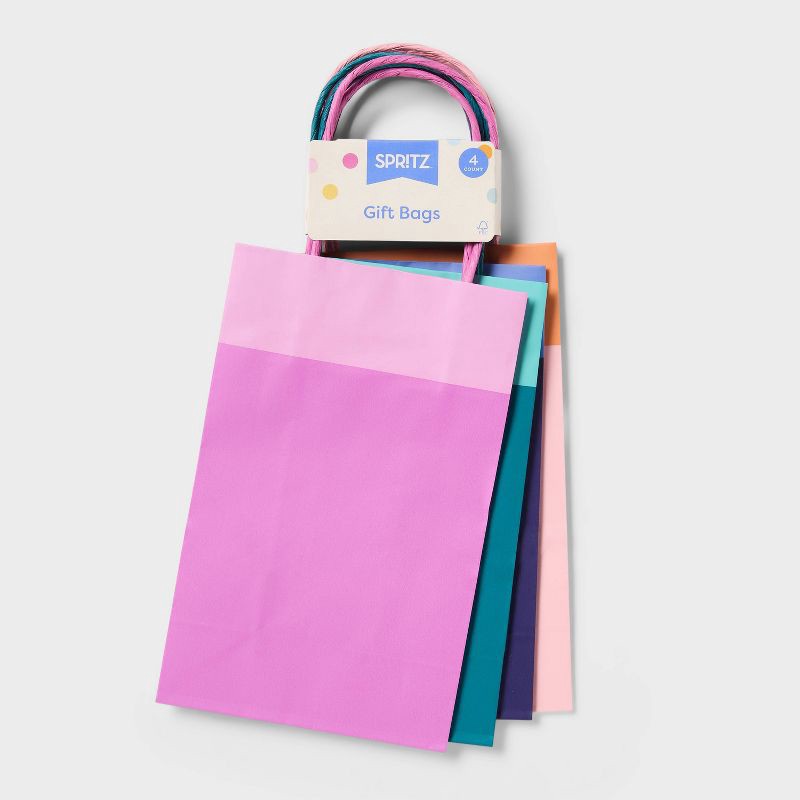 Brighten up your gift-giving with this 4-pack of colorblock kraft gift bags from Spritz. Featuring a delightful mix of pink, orange, and blue, these bags are perfect for any occasion. Made from sturdy…