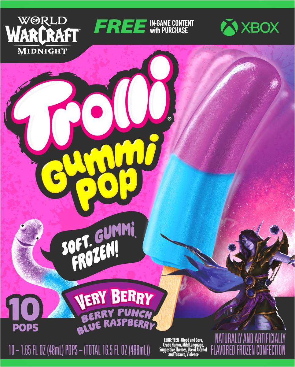 Trolli Frozen Gummi Pops Sour Gummy Candy Frozen Snacks, Very Berry, 10 count