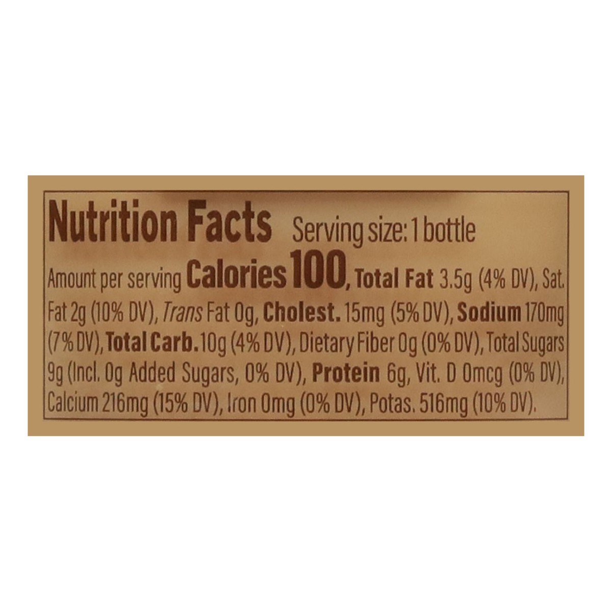 Nutritional's: 100 Calories No Added Sugar: 9g total sugar, 70% less sugar than core 9.5 fl oz