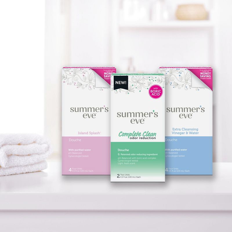 - Contains 1 box of 4 Summer's Eve disposable douches for feminine care, 4.5 fl oz in each douche