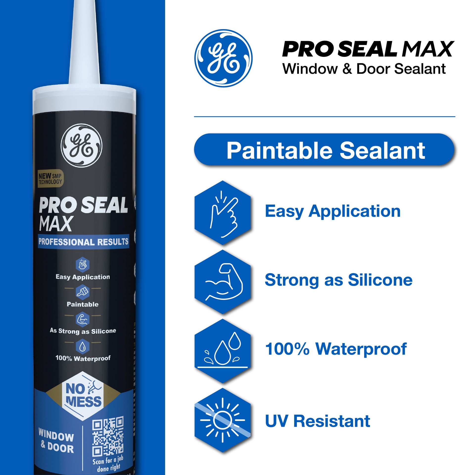 GE Pro Seal Max 9-oz Window and Door Crystal Clear Paintable Advanced Sealant Caulk
