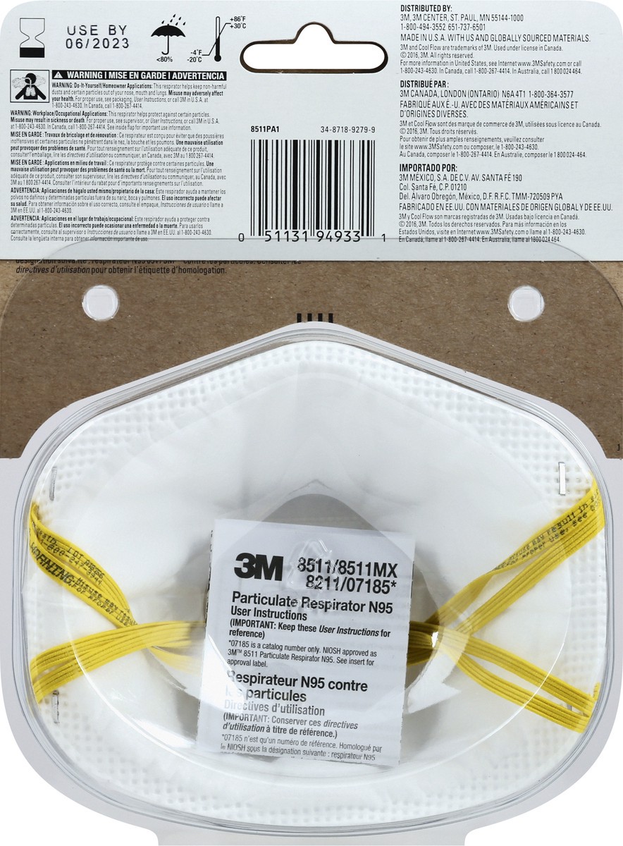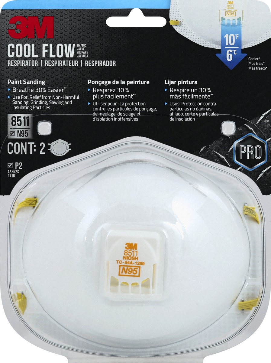 3M 8511 NIOSH. TC-84A-1299. N95. 10 degrees F. 6 degrees C. Cooler (Compared to 3M inside respirator temperature based on 3M lab testing in 2010 and 2011). Paint Sanding: Breathe 30% easier (Compared …