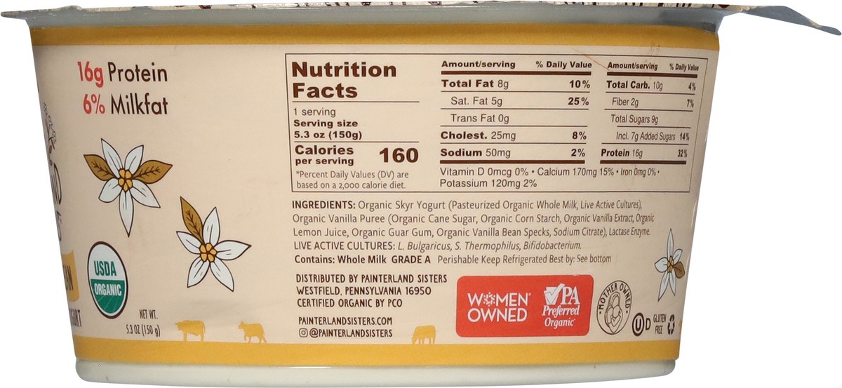 Painterland Sisters Organic Skyr Icelandic Style Vanilla Bean Yogurt 5.3 oz