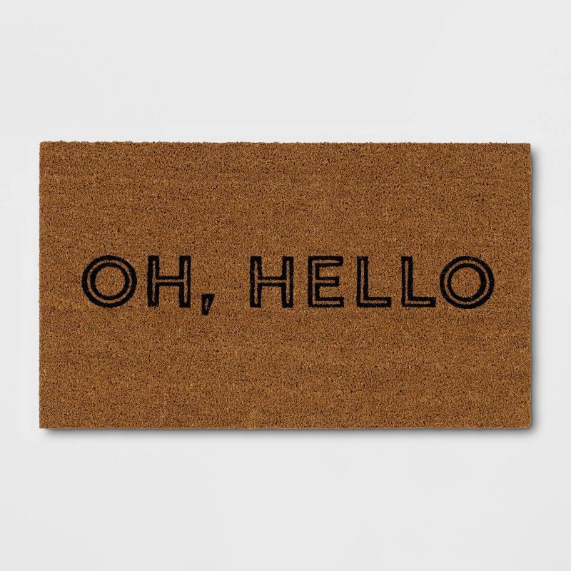 Bring a welcoming vibe to your entryway with this Oh Hello Rectangular Outdoor Doormat from Room Essentials™. The rectangular doormat is crafted from 100% coir material to remove dirt and debris from …