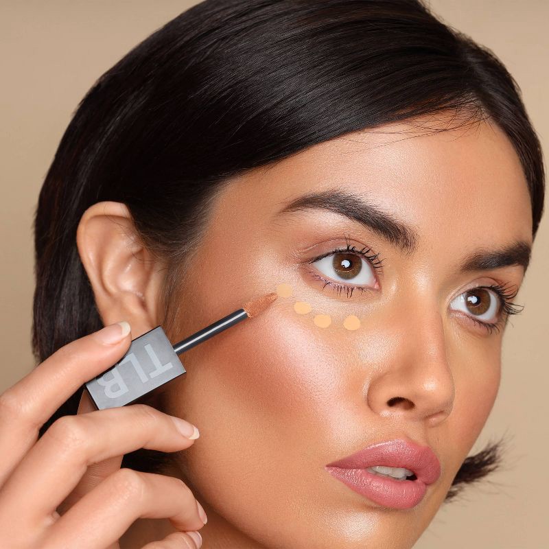 - Tap the applicator wand onto your face to add a few dots of concealer.