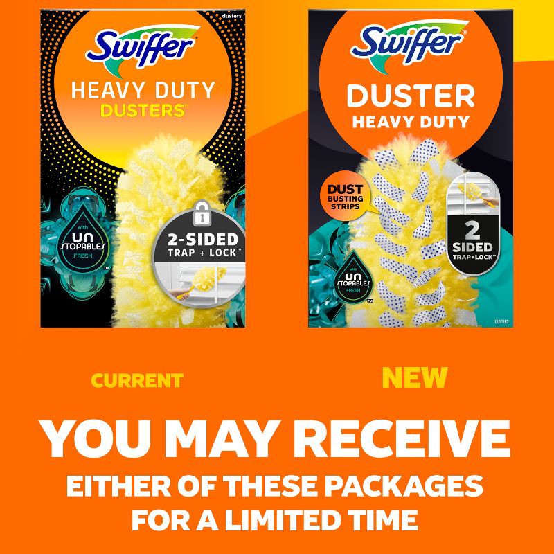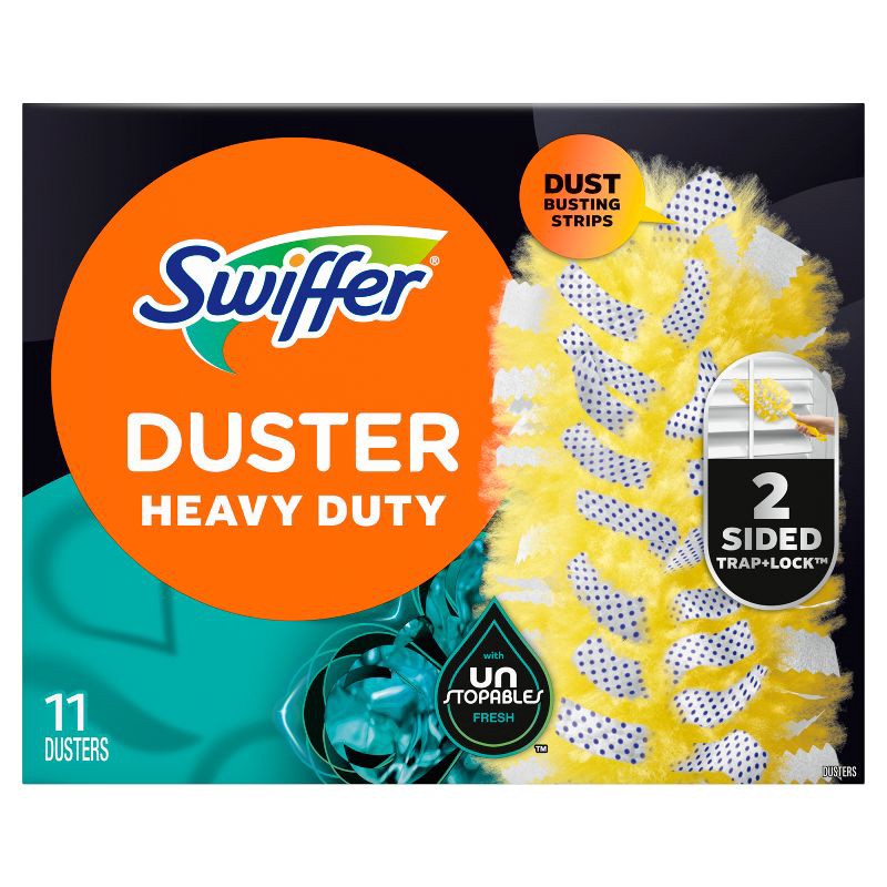 - EASY DUSTINGSwiffer Heavy Duty Dusters have NEW DUST-BUSTING STRIPS to break down layers of built-up dust, and specially coated fibers that reach deep into nooks and crannies to PICK UP 5X more dust than a feather duster*. *after 9 uses
