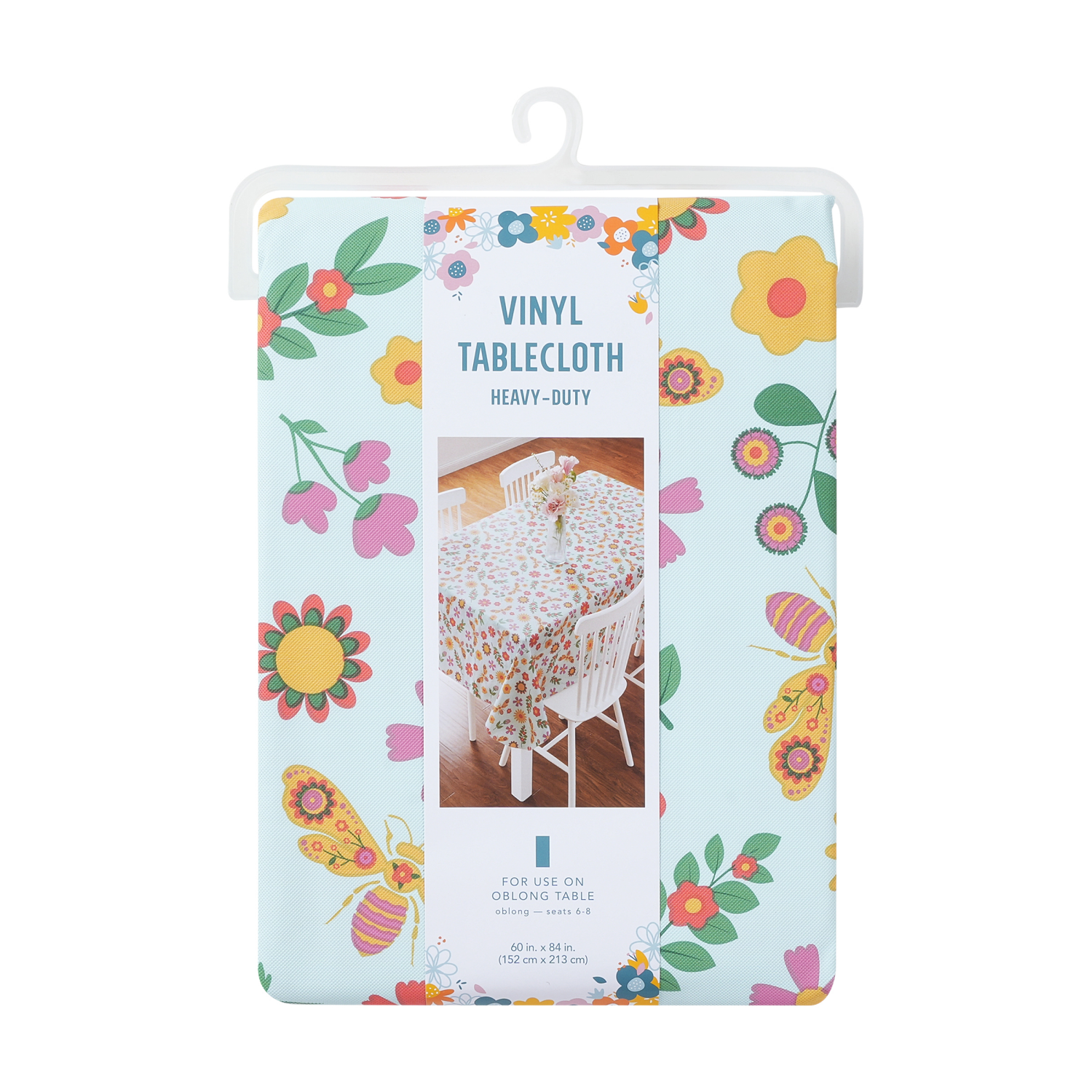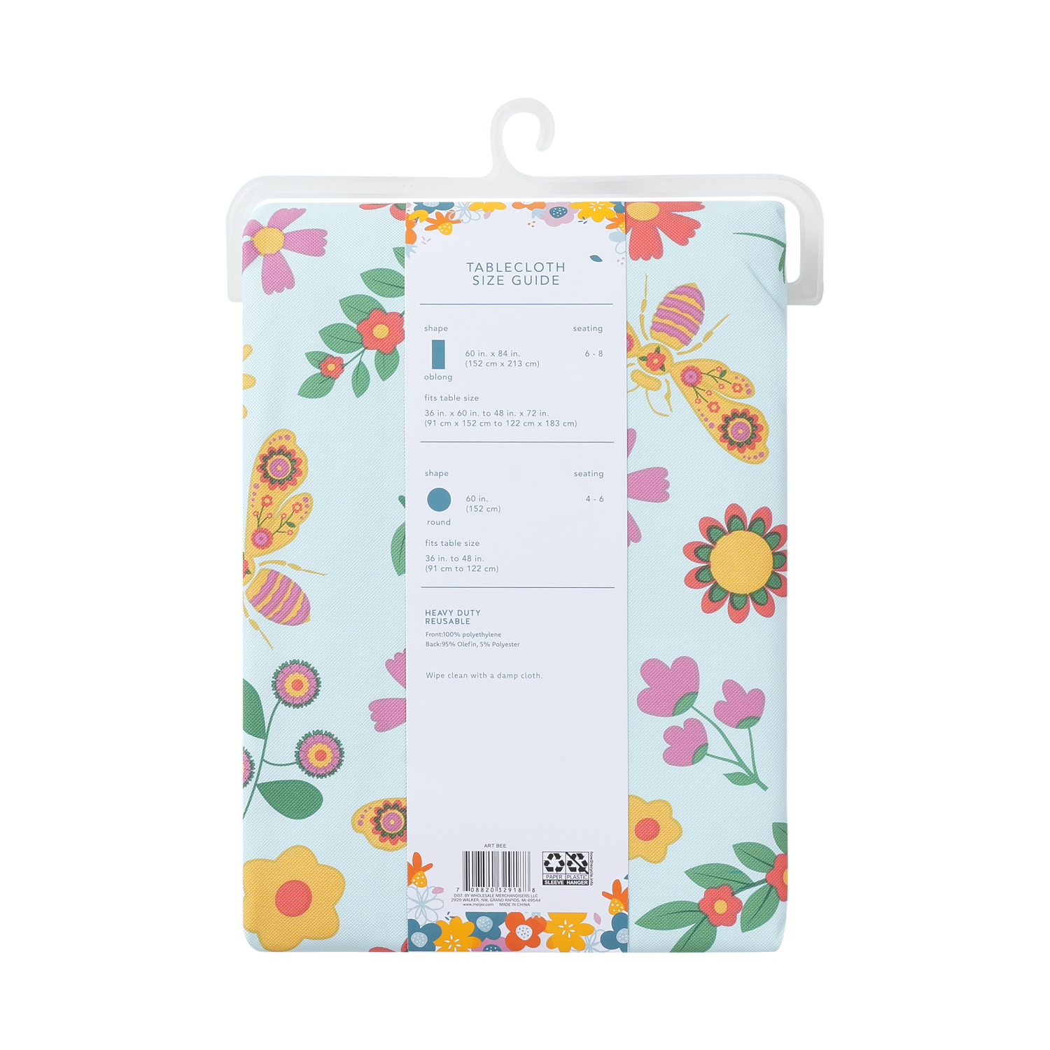 Meijer Corporate Seasonal Mcs Spring Art Bee Peva Tablecloth, 60 in x 84 in