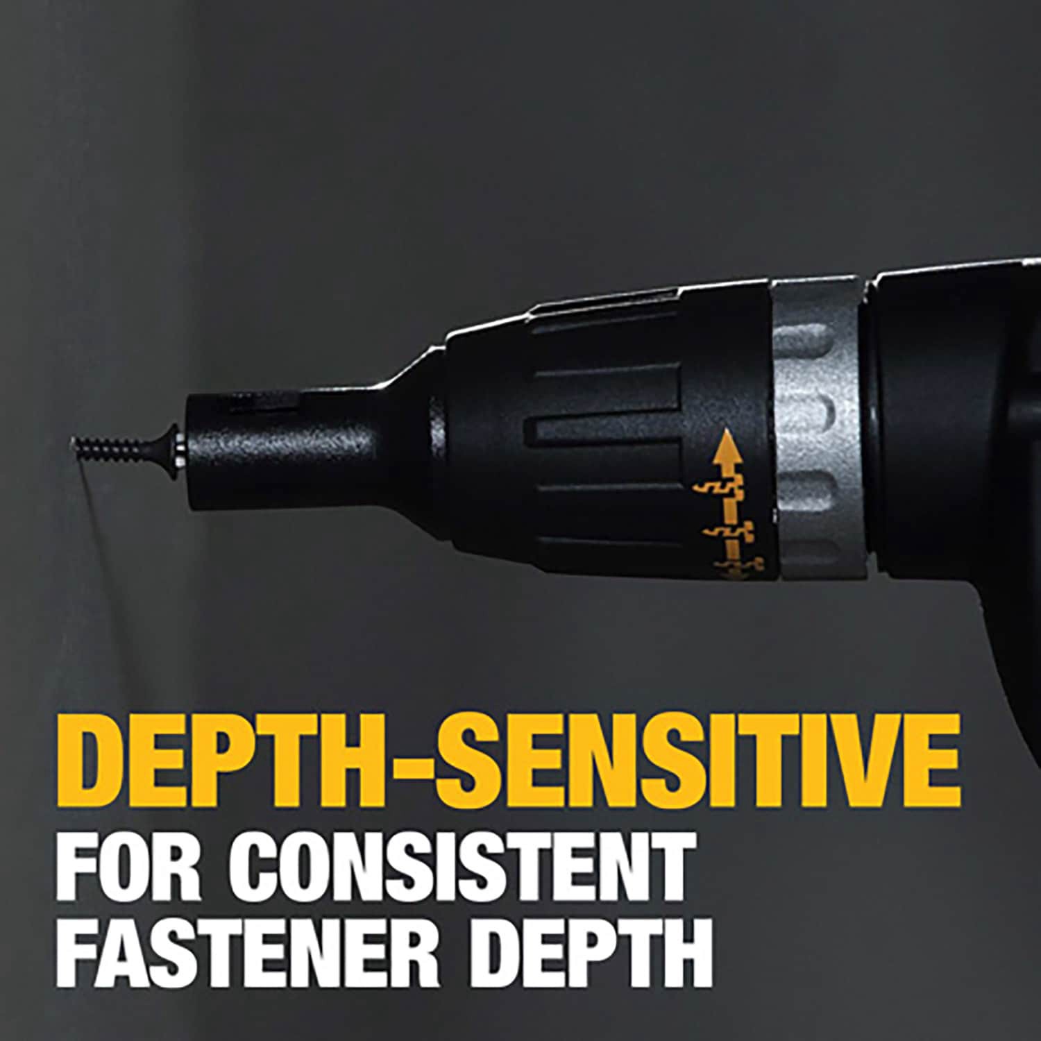Depth-sensitive "set and forget" nosepiece for consistent fastener depth. 6.0 Amp, variable-speed motor operates from 0-5,300 RPM. Rubber grip and two-finger trigger for increased comfort and ease of …