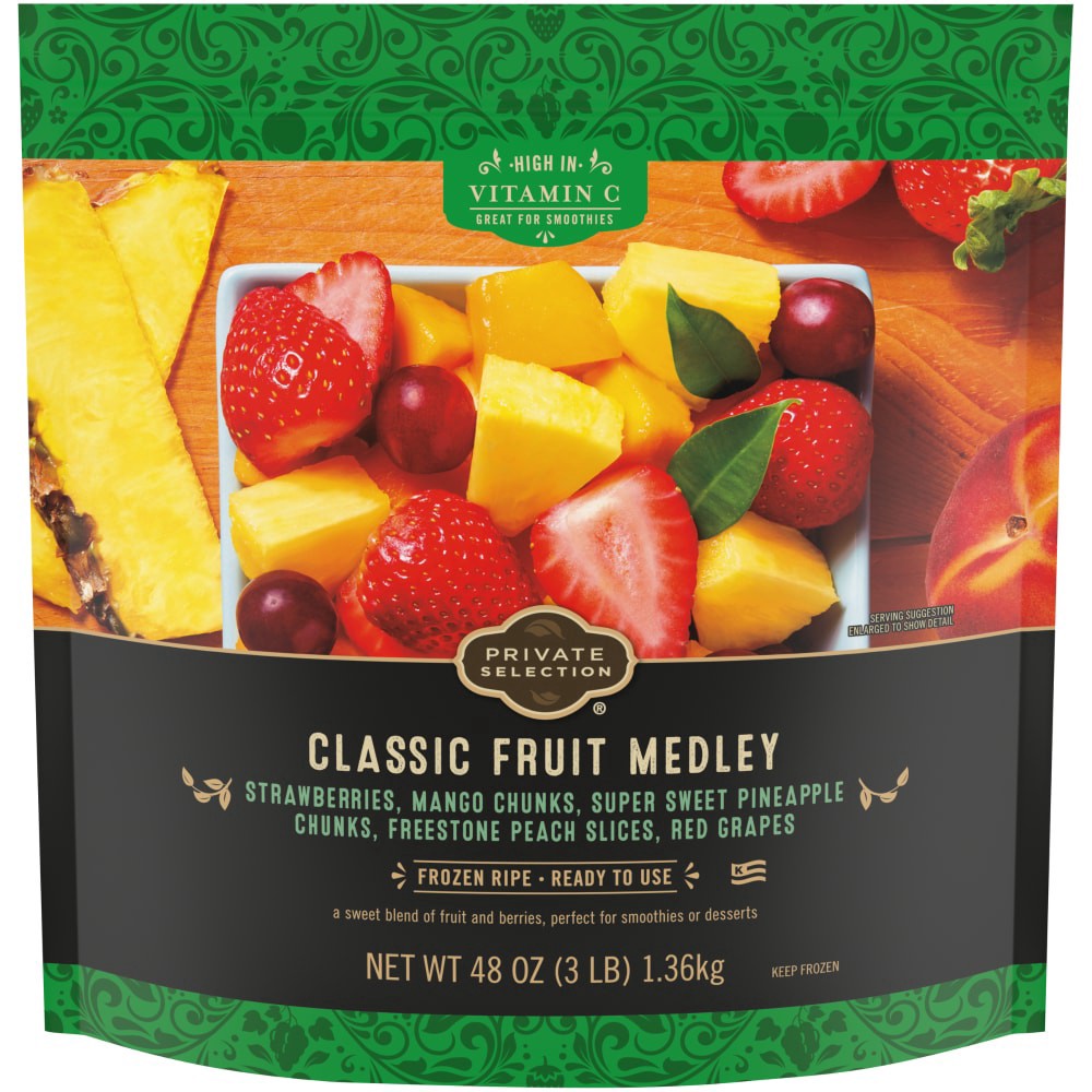 Strawberries, mango, pineapple, peaches & red grapes. Premium quality. 90 calories, 0 g total fat, 0 g trans fat, 35 mg sodium, 12 g sugars per serving. High in vitamin C. Good source of fiber. Diets …