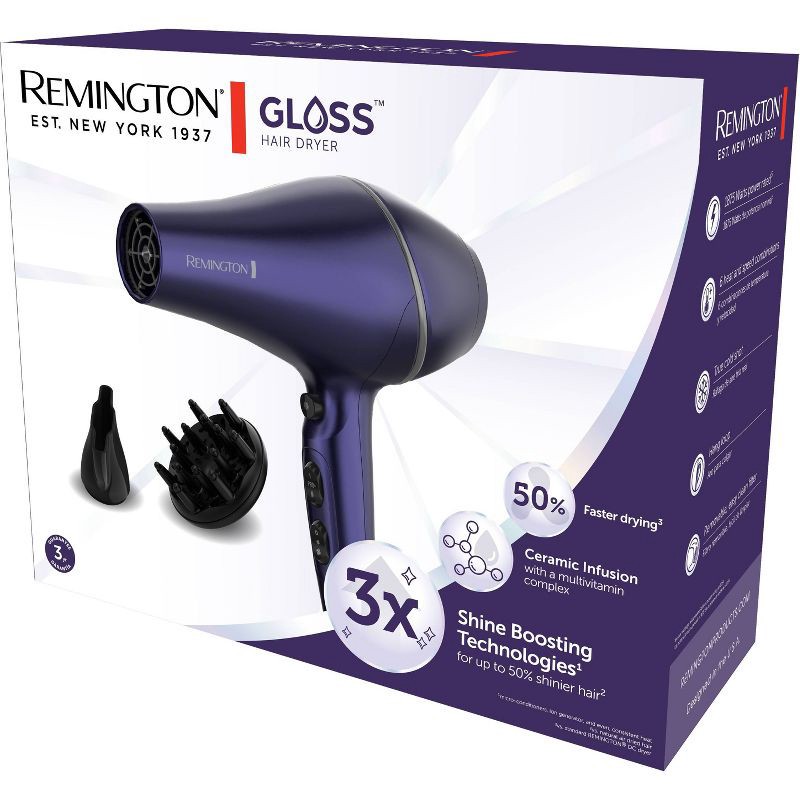 Ready to discover the secret to luminous, shiny hair? The REMINGTON™ Gloss™ Hair Dryer is designed to elevate your styling experience at home. Featuring 3x Shine Boosting Technologies for up to 50% sh…