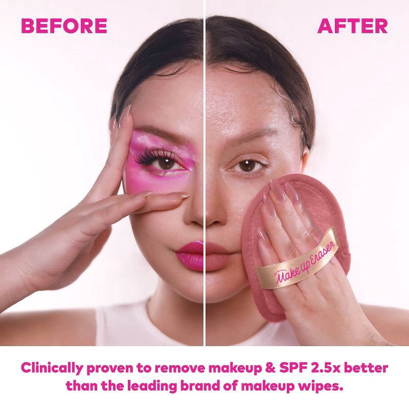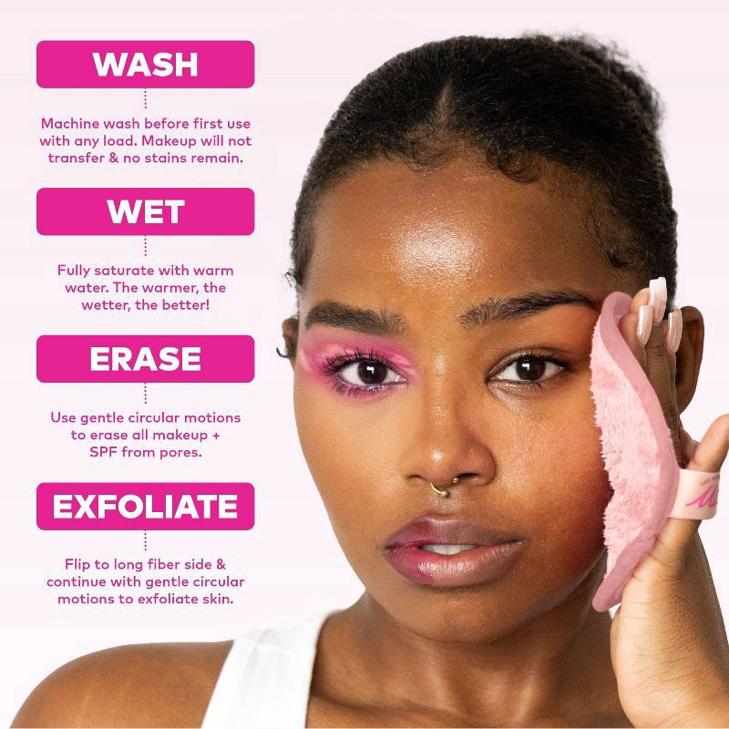 Erase all makeup with JUST WATER™ including waterproof + SPF. Our patented, water-activated, cloud-soft fibers gently & easily remove all makeup & sunscreen from pores. 2 in 1 benefit: one side erases…
