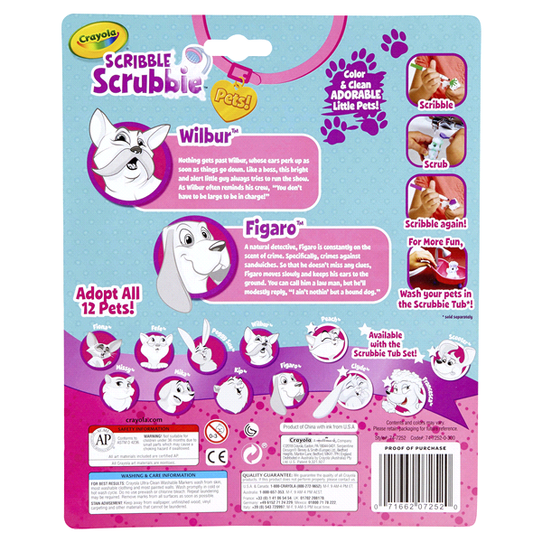 Color, Rinse, Re-Pet! Crayola Scribble Scrubbie Pets are adorable, colorable and washable pet figures that little would-be groomers can customize again and again! Choose a pooch and color with the 3 i…