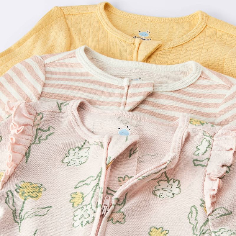 Baby Girls' 3pk Floral Pointelle Long Sleeve Sleep N' Play - Cloud Island™ Pink 0-3M