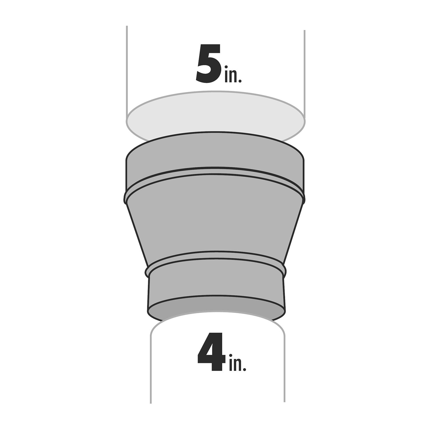 Reduces or increases the diameter of galvanized round pipe. Connects 5-in pipe to 4-in pipe in a run of round duct. Constructed from 30-gauge galvanized steel for durability and rust resistance. Featu…