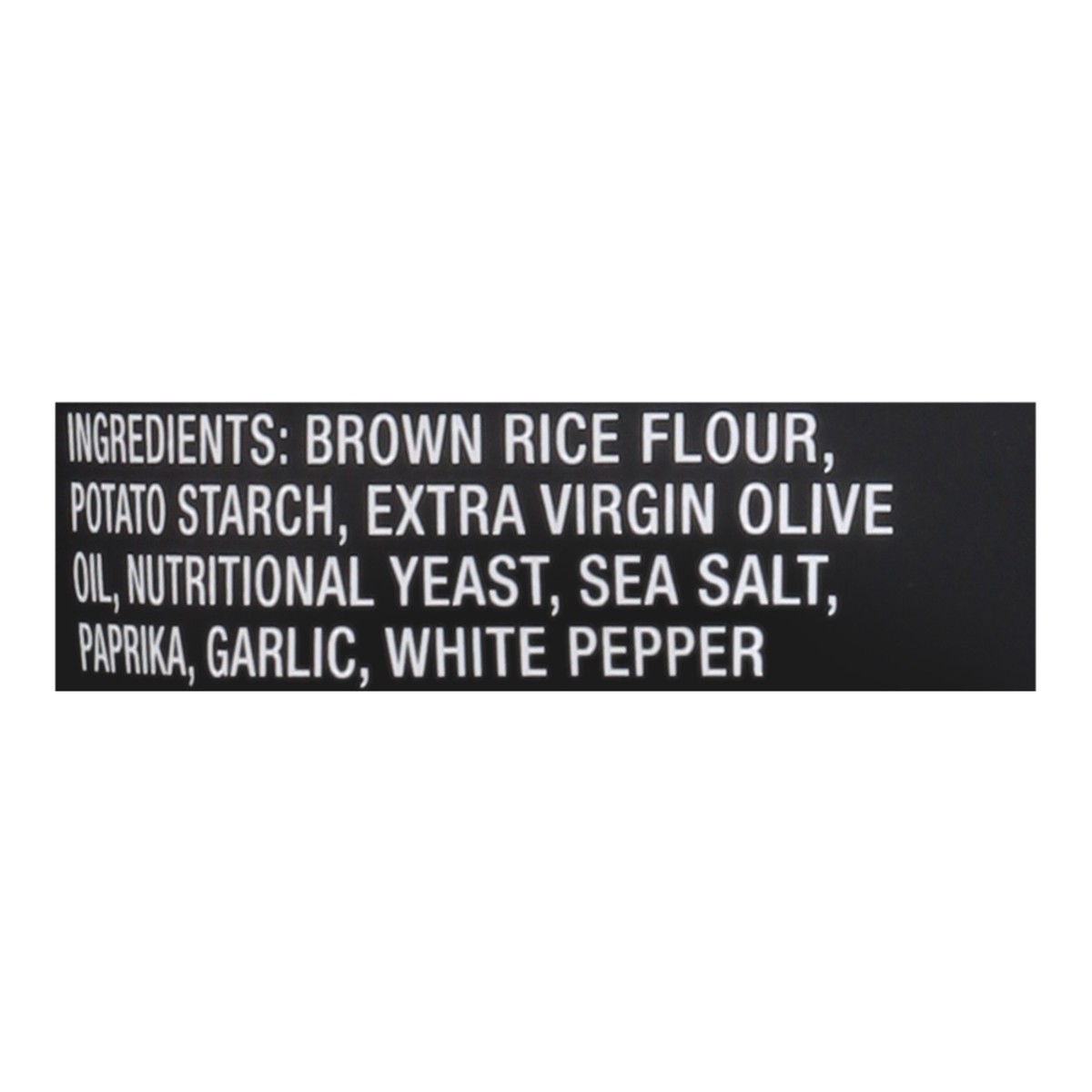 Brown Rice Flour, Potato Starch, Extra Virgin Olive Oil, Nutritional Yeast, Sea Salt, Paprika, Garlic, White Paper.