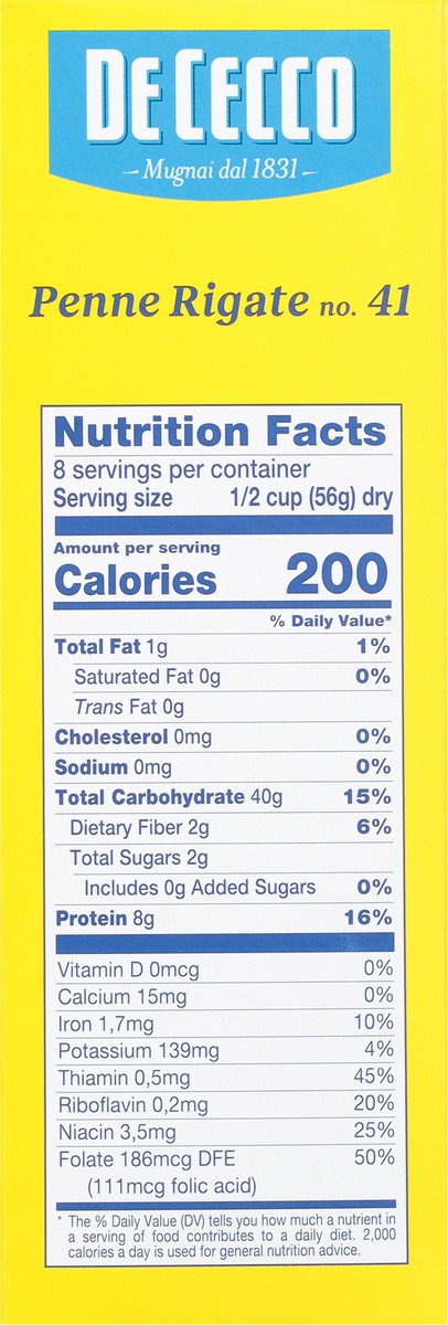 Durum Wheat Semolina, Vitamins (Niacin, Thiamine Mononitrate, Riboflavin, Folic Acid), Iron (Ferrous Lactate).