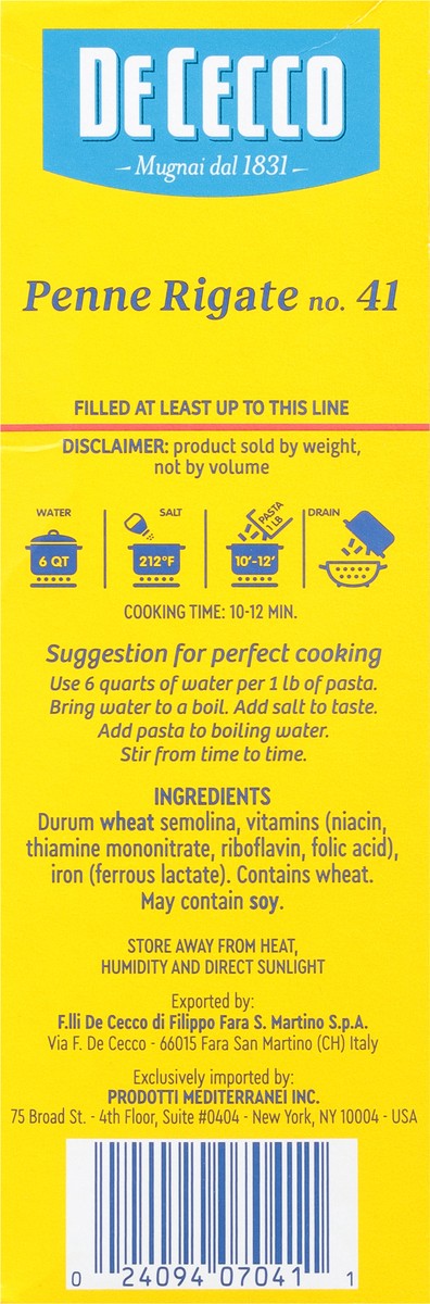 Cooking time 12 min. Al dente 10 min. Dried for 9 hours certified. For a superior quality pasta. From father to son. The De Cecco family started milling in 1831 at Fara San Martino: a real vocation wh…