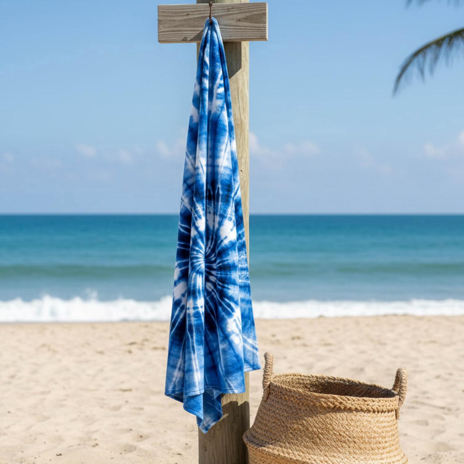 The soft and absorbent SOL BORNE Printed Blue Tie Dye Beach Towel is the ideal companion for so many fun outdoor activities. This bright, multi-colored towel features a vibrant pattern of color includ…