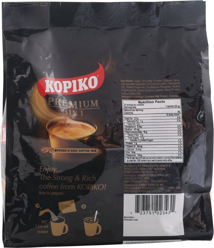 Kopiko Premium 3 in 1 Coffee Mix 30 - 0.70 oz Packets
