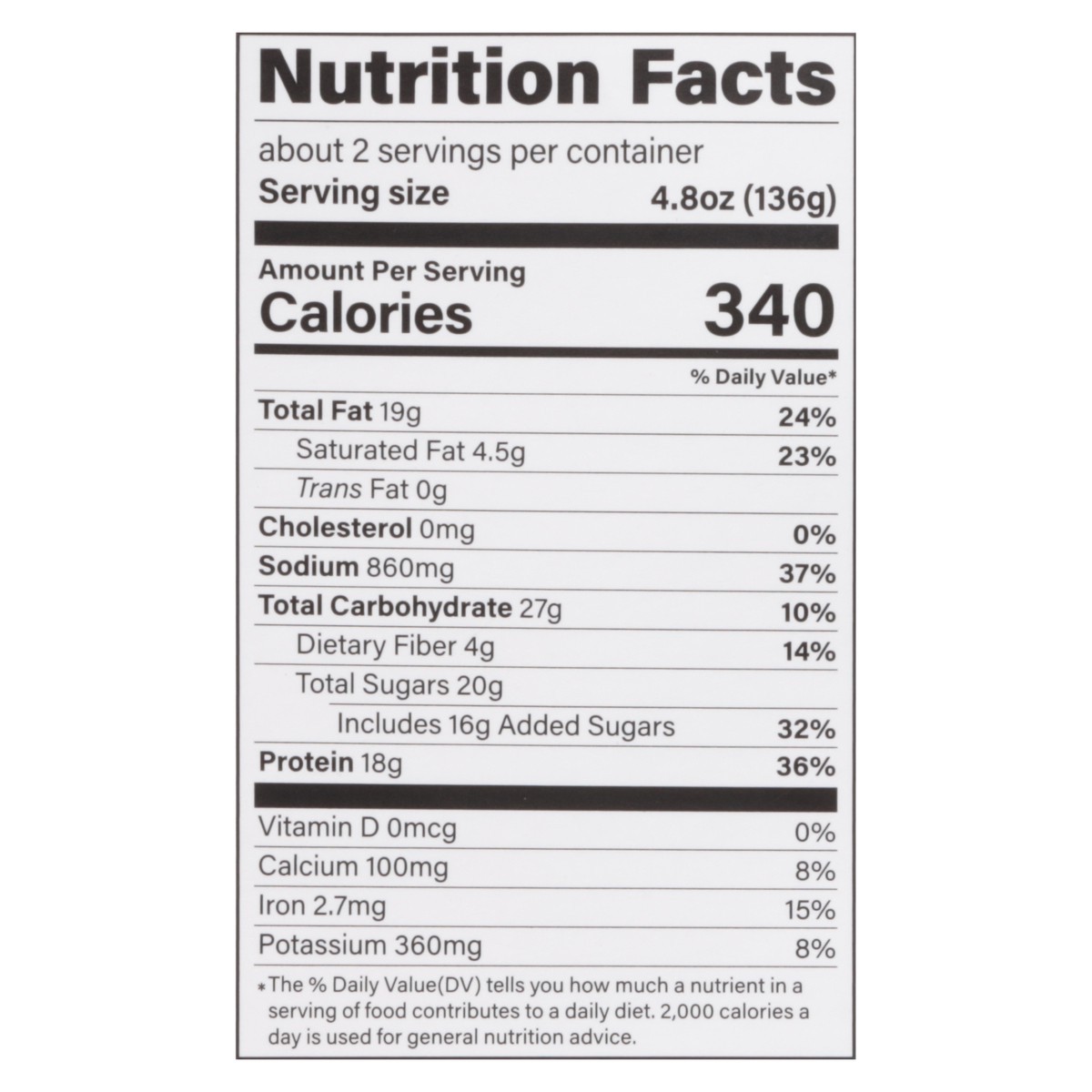Water, Plant-Based Pork Protein (Soy Protein, Wheat Protein, Corn Starch, Soy Flour, Wheat Starch), Sugar, Vinegar, Tomato Paste, Corn Syrup, Soybean Oil, Refined Coconut Oil, Rice Bran Powder, Potato…
