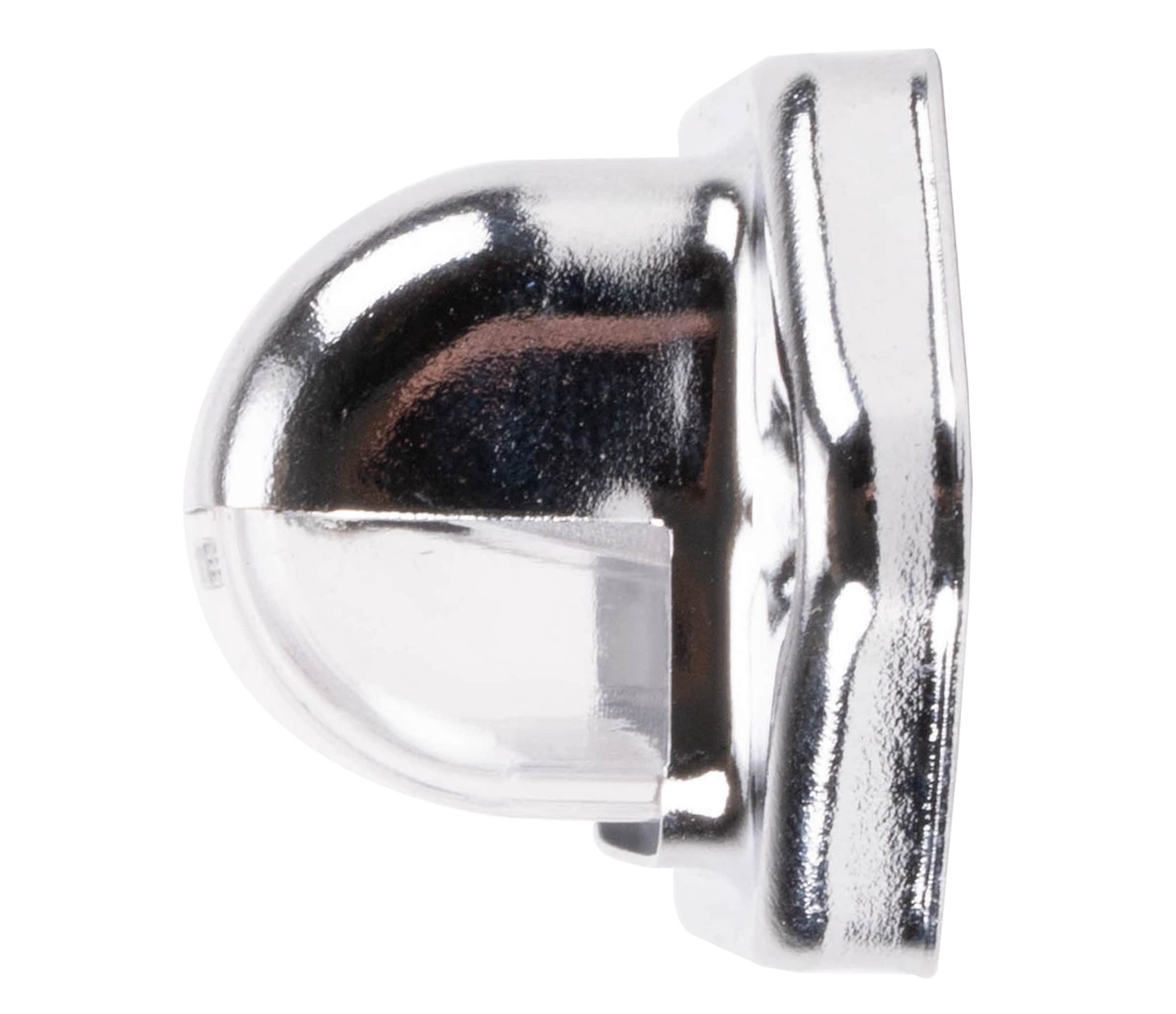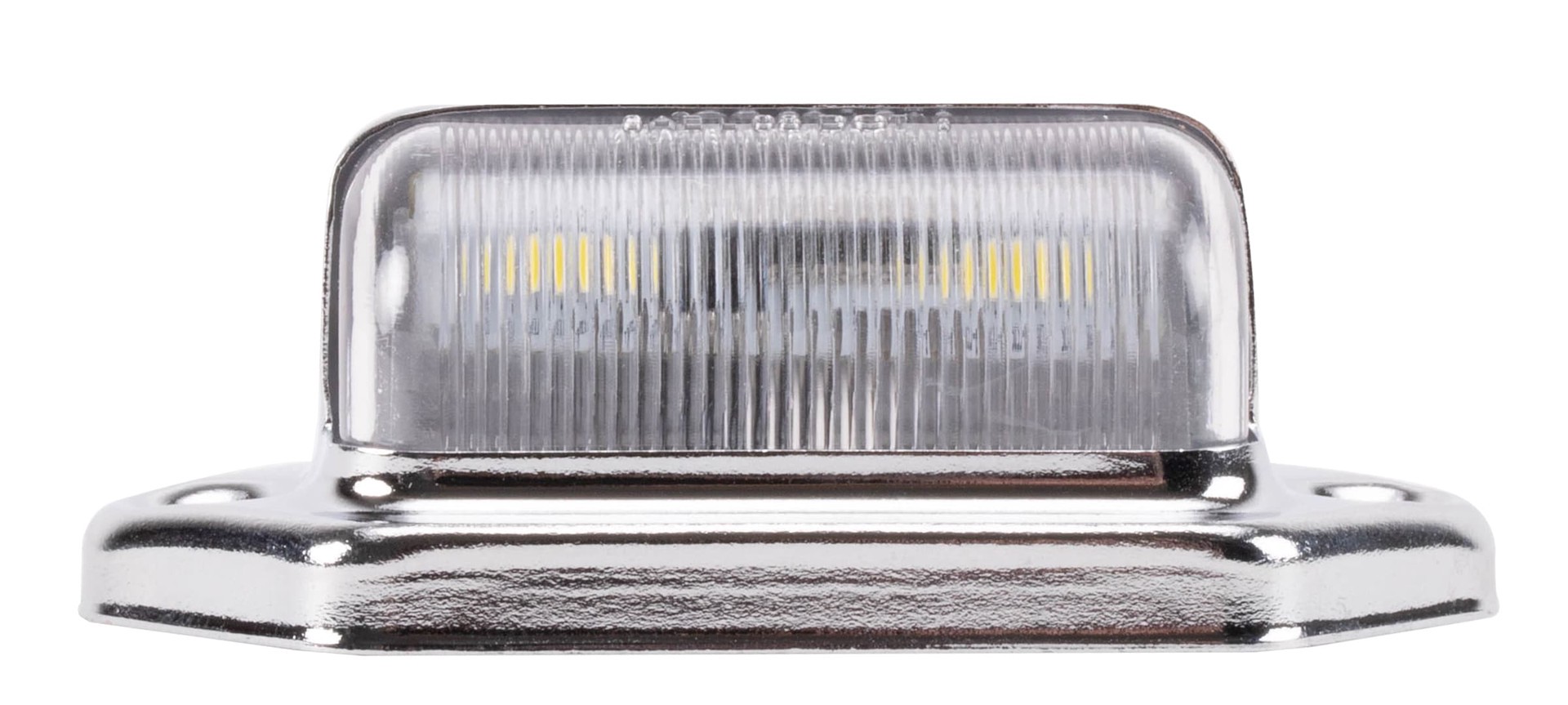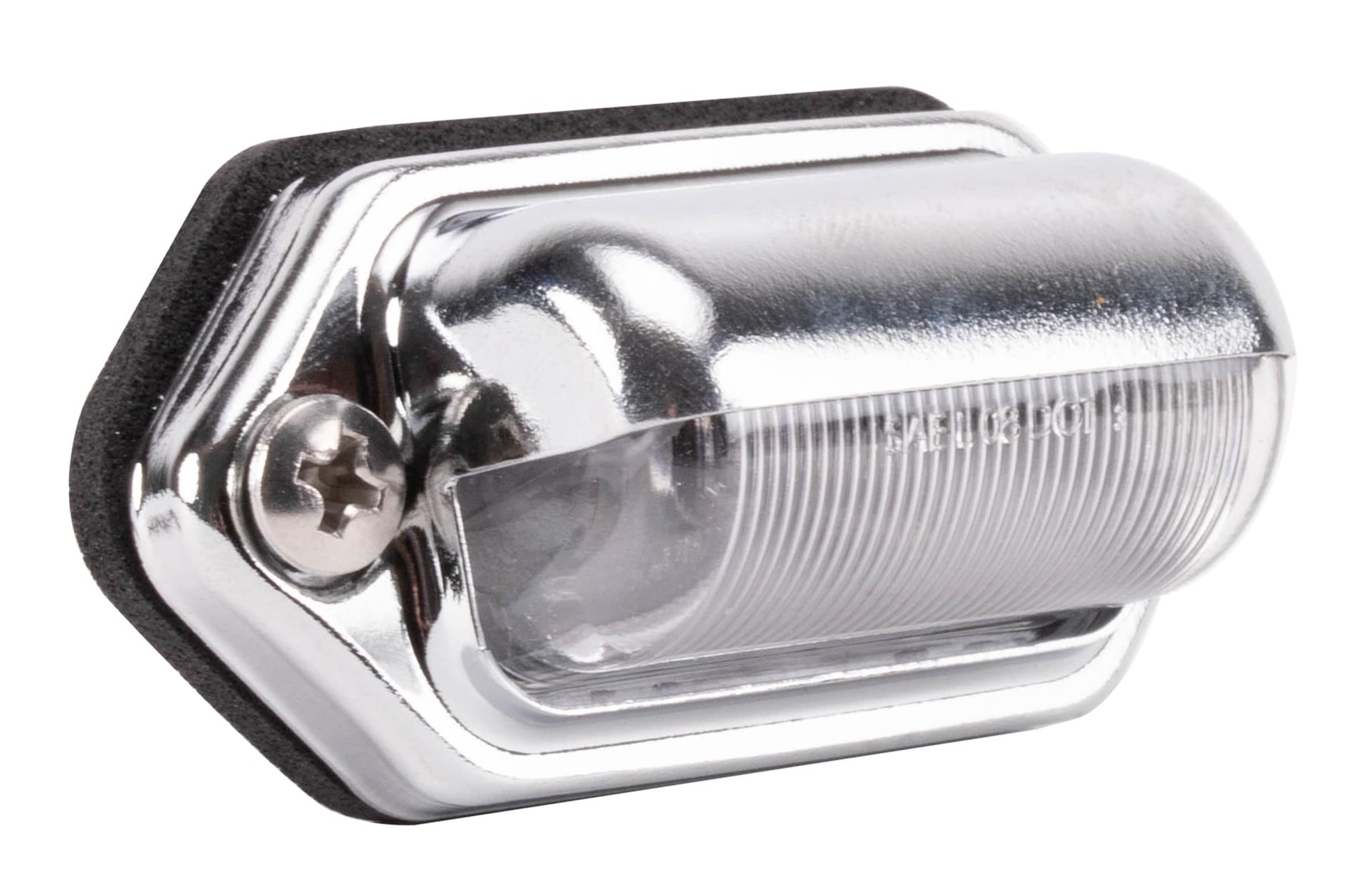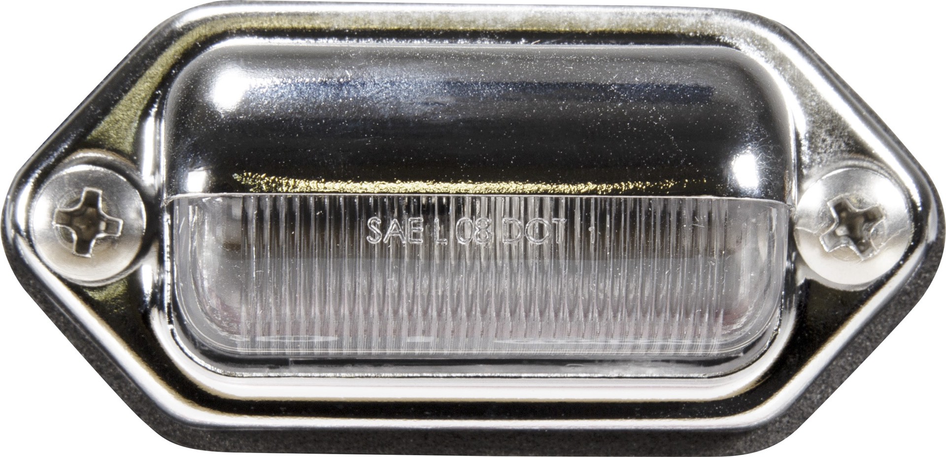 Maintenance free - no bulbs to replace. Surface mounts on 2-1/8 in centers. Chrome plated steel housing. Works with 12 V systems. Current draw: 0.06 Amps.