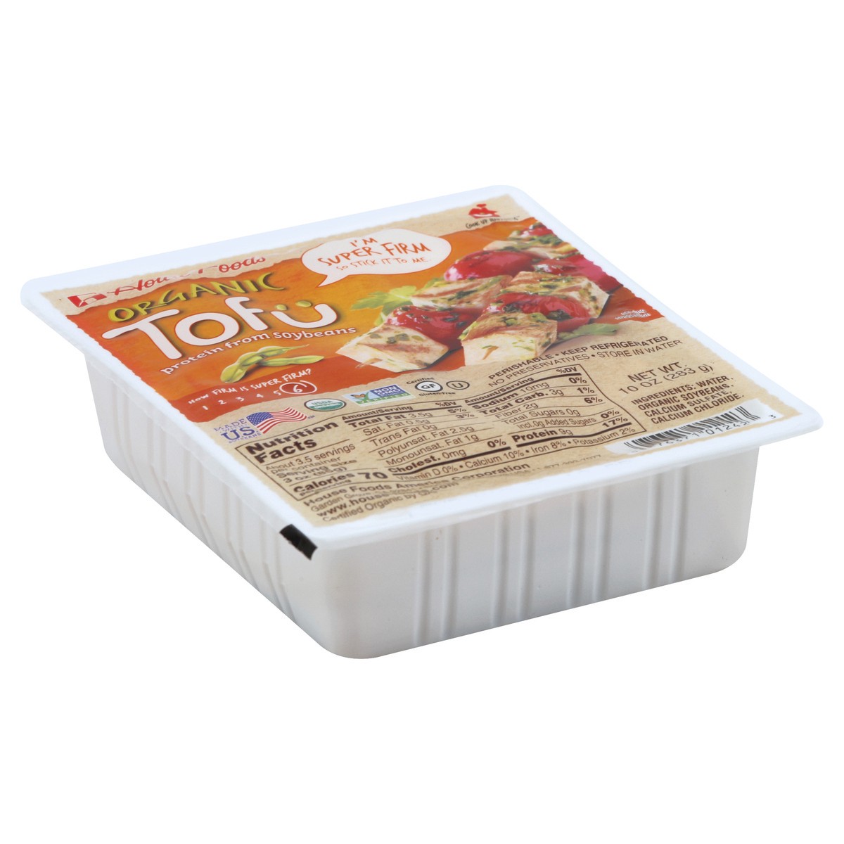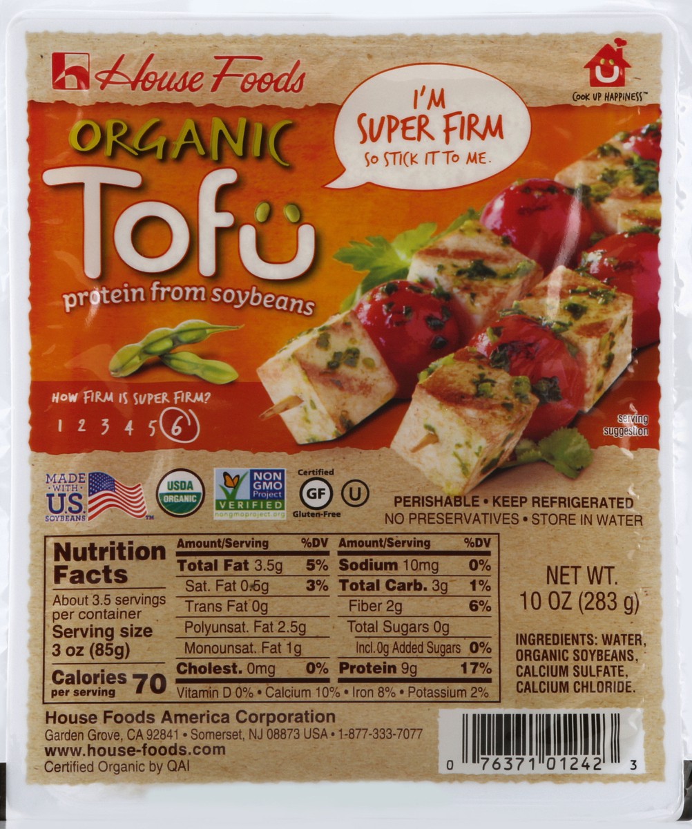 Protein from soybeans. I'm super firm so stick it to me. How firm is super firm? 6. USDA organic. Non GMO project verified. nongmoproject.org. Certified gluten-free. No preservatives. www.house-foods.…