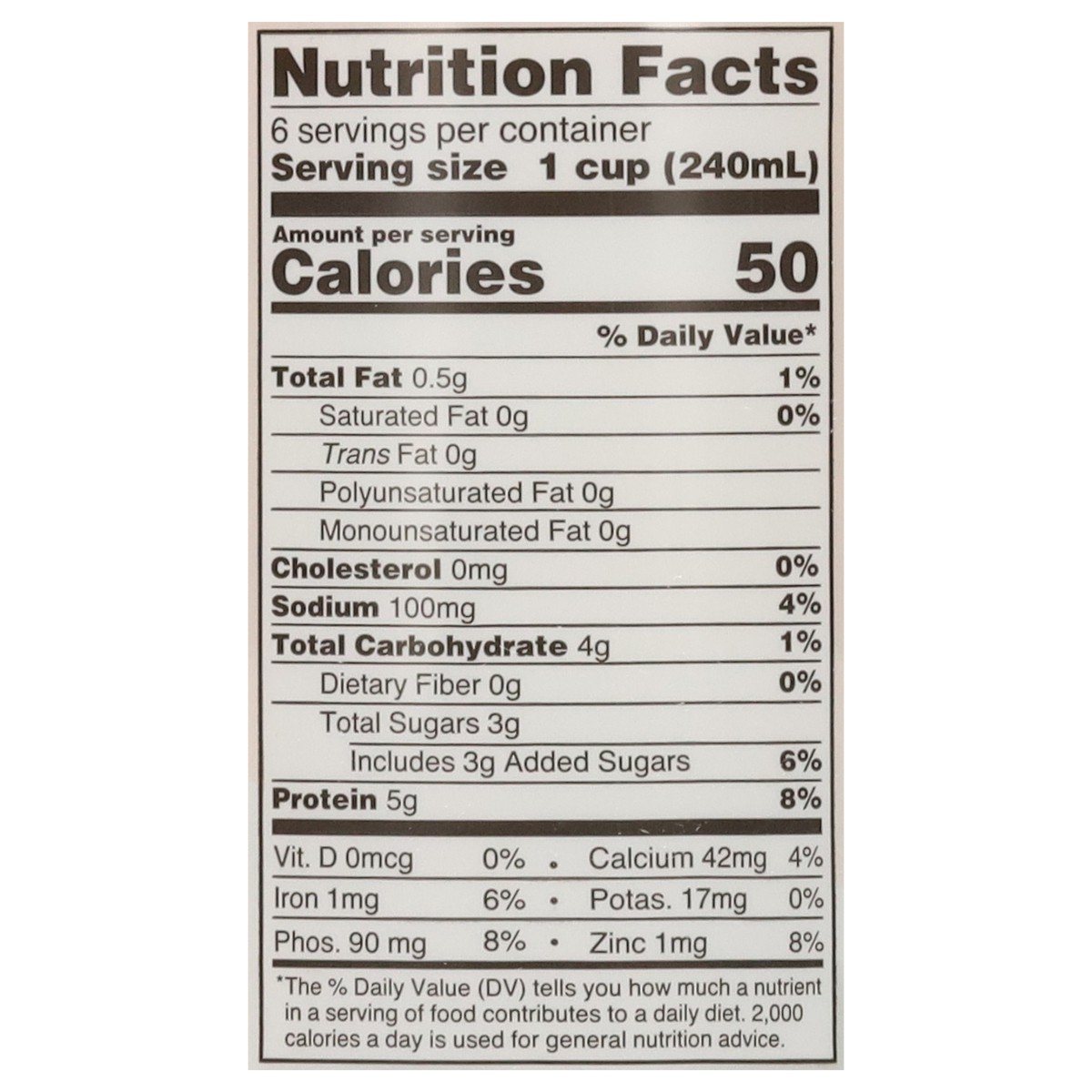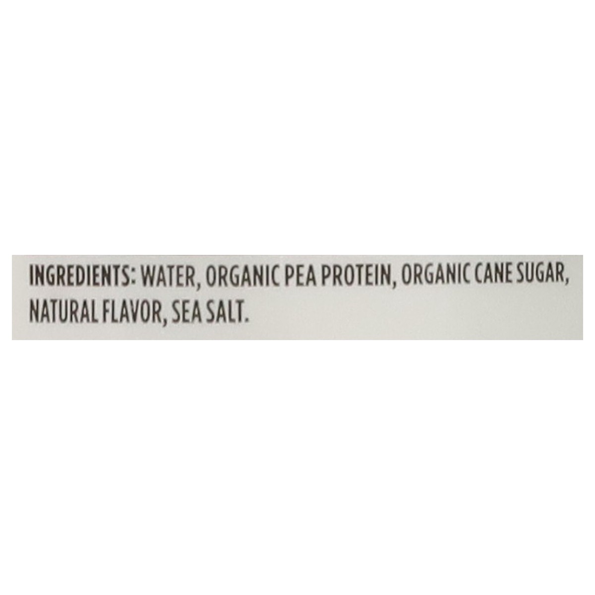 Water, Organic Pea Protein, Organic Cane Sugar, Natural Flavor, Sea Salt.