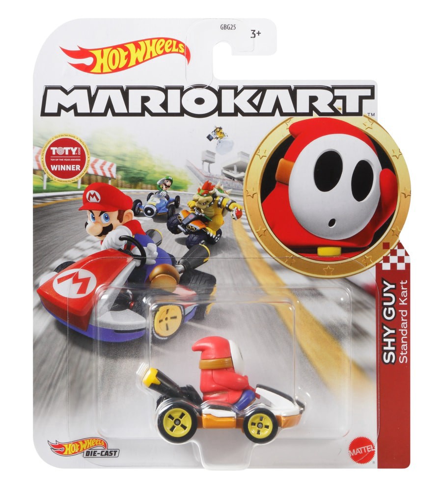 This is a Hot Wheels Mario Kart Shy Guy Standard Kart that's produced by the good folks over at Mattel. This Mario Kart Hot Wheel is optimized to work on any Hot Wheel tracks! A great gift for any fan…