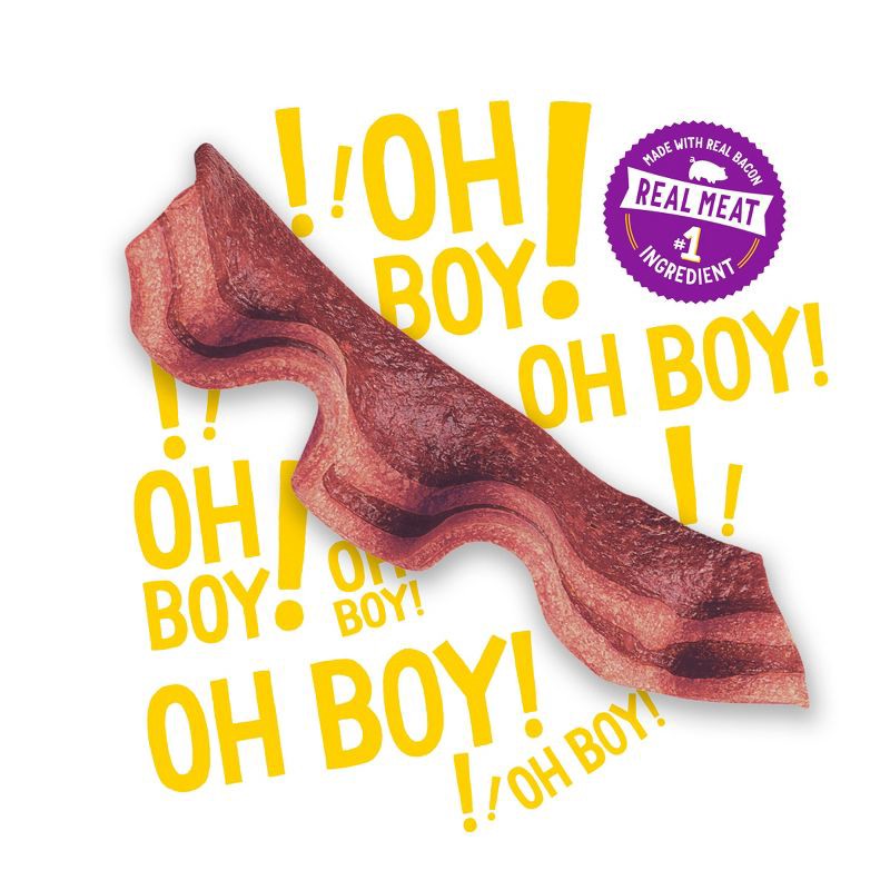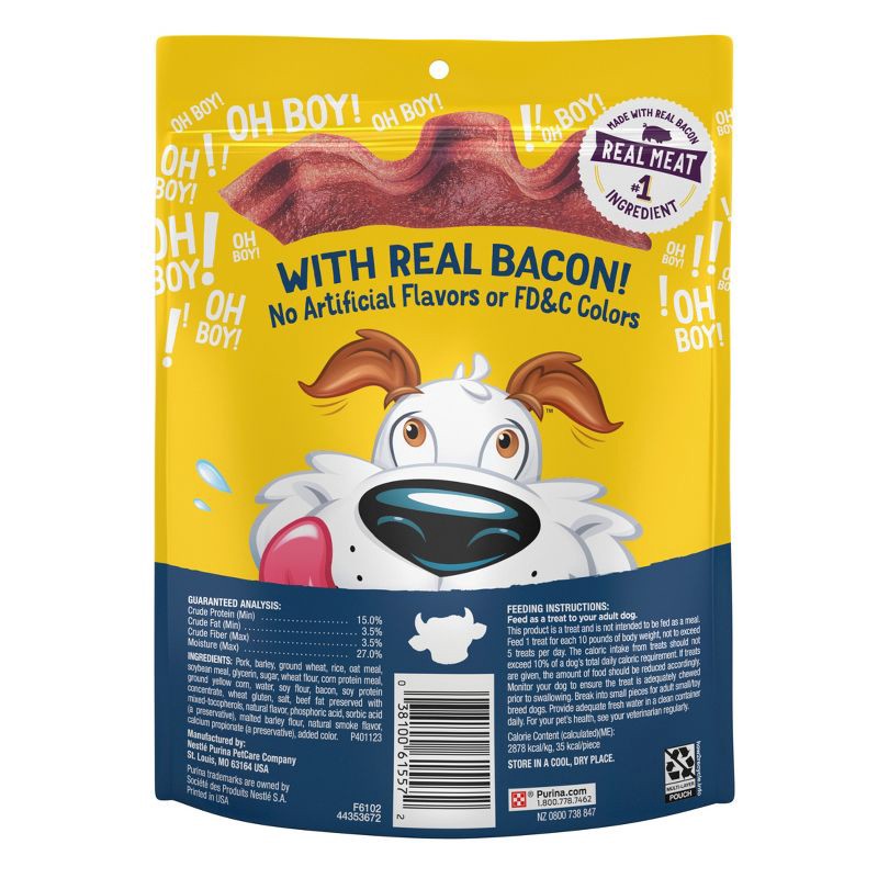 - Real meat is the number 1 ingredient in these bacon and beef treats for dogs. Purina bacon strip combines the meaty taste of bacon and beef flavor for a mouthwatering reward