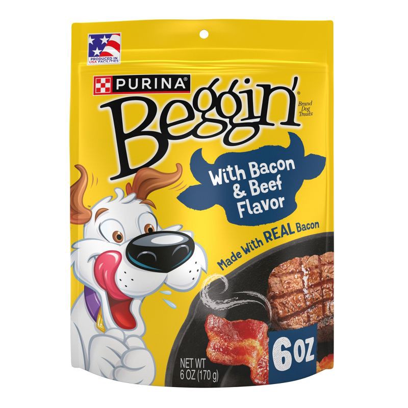 - Beggin' Strips for dogs made with real bacon. The original Purina Beggin' Strips bacon dog treats that started it all with added beef flavor