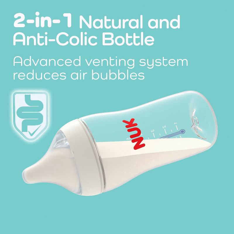 Introducing the Perfect Match 2-in-1 Natural + Anti-Colic Bottle by NUK, the first baby bottle with a super-soft, skin-like silicone nipple that uniquely molds to your baby's individual palate for the…
