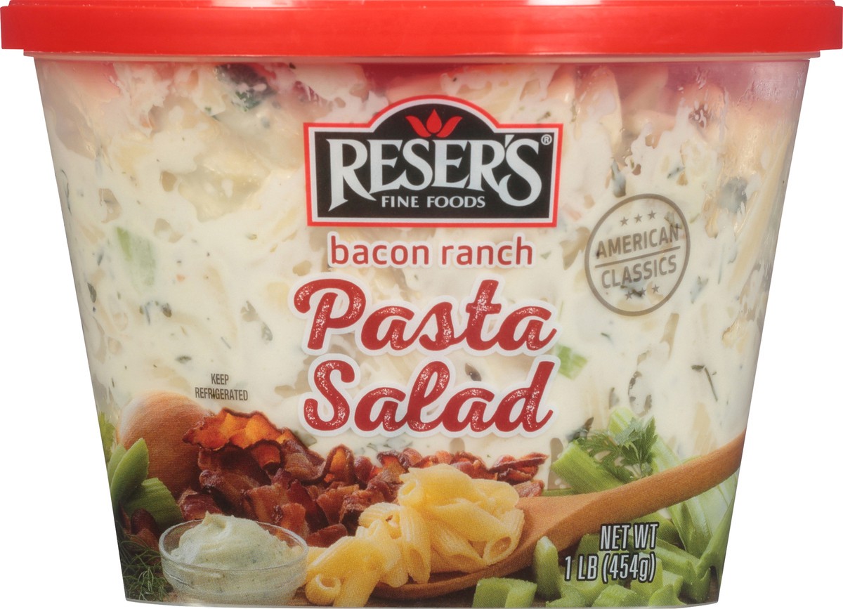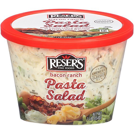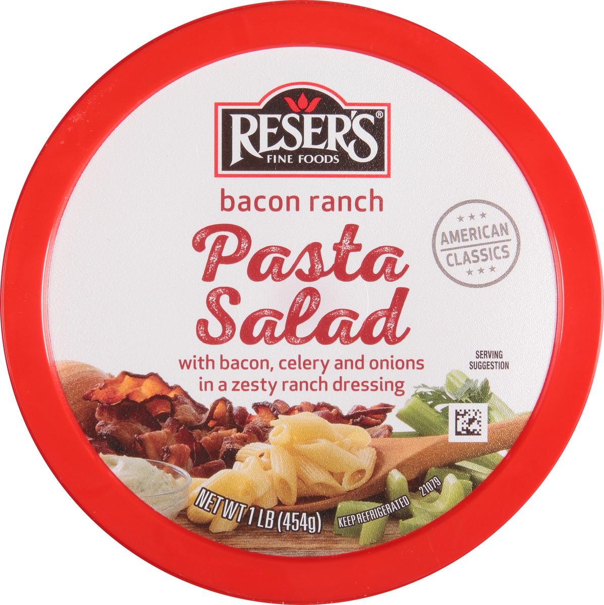 Everything's better with bacon. Reser's Bacon Ranch pasta salad is studded with bacon and packed with flavor. It features mini penne noodles cooked to perfection, smoky bacon, crunchy celery and onion…